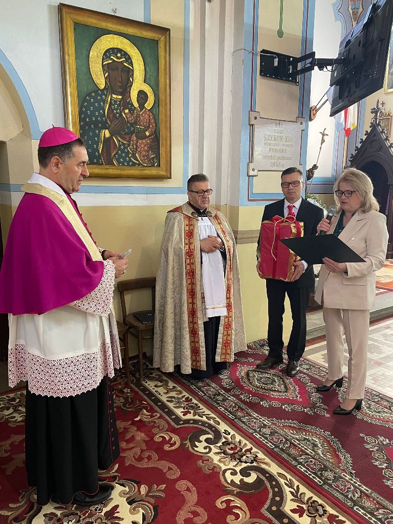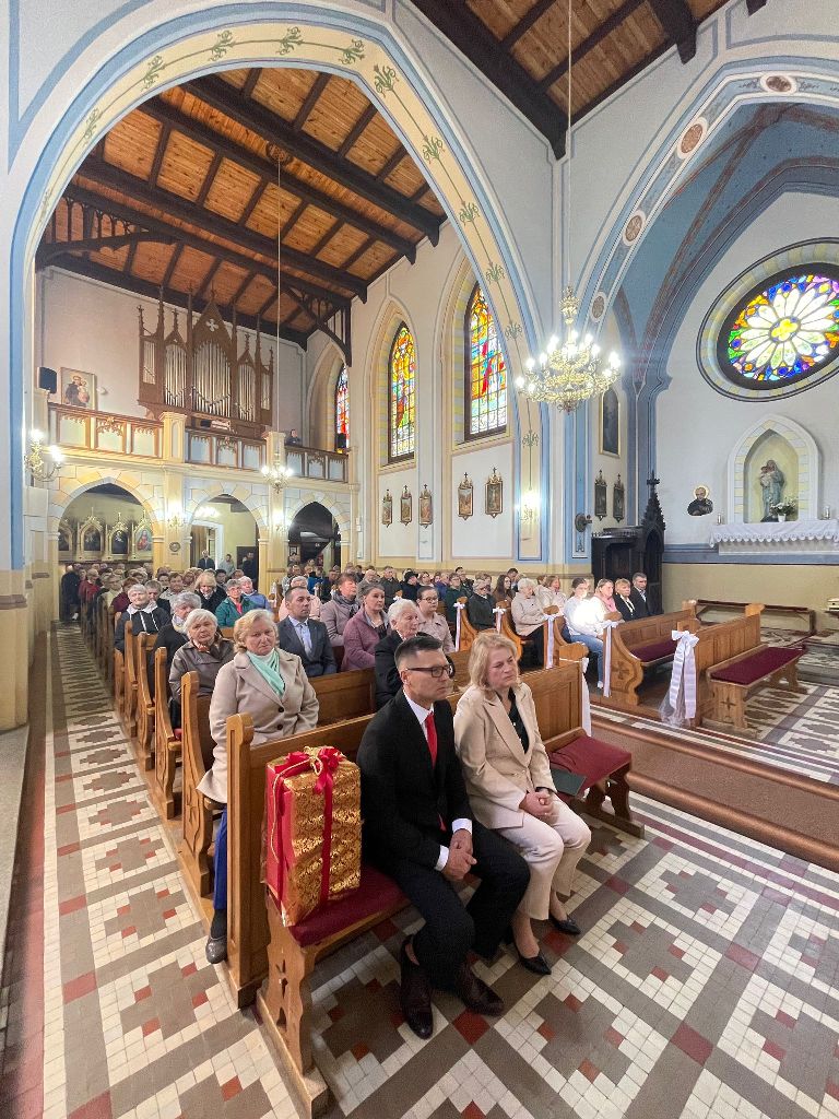 W imieniu całej wspólnoty parafialnej gościa powitał proboszcz, ks. dr Grzegorz Jabłoński, przedstawiając szczegółowe sprawozdanie z życia parafii. Poruszył m.in. kwestie duszpasterskie, wyzwania demograficzne oraz aktualne potrzeby i plany wspólnoty. Następnie słowo powitania w imieniu Rady Parafialnej skierowali Elżbieta Koc oraz Tadeusz Pikuliński.