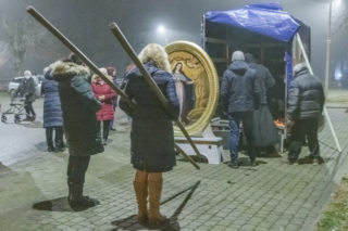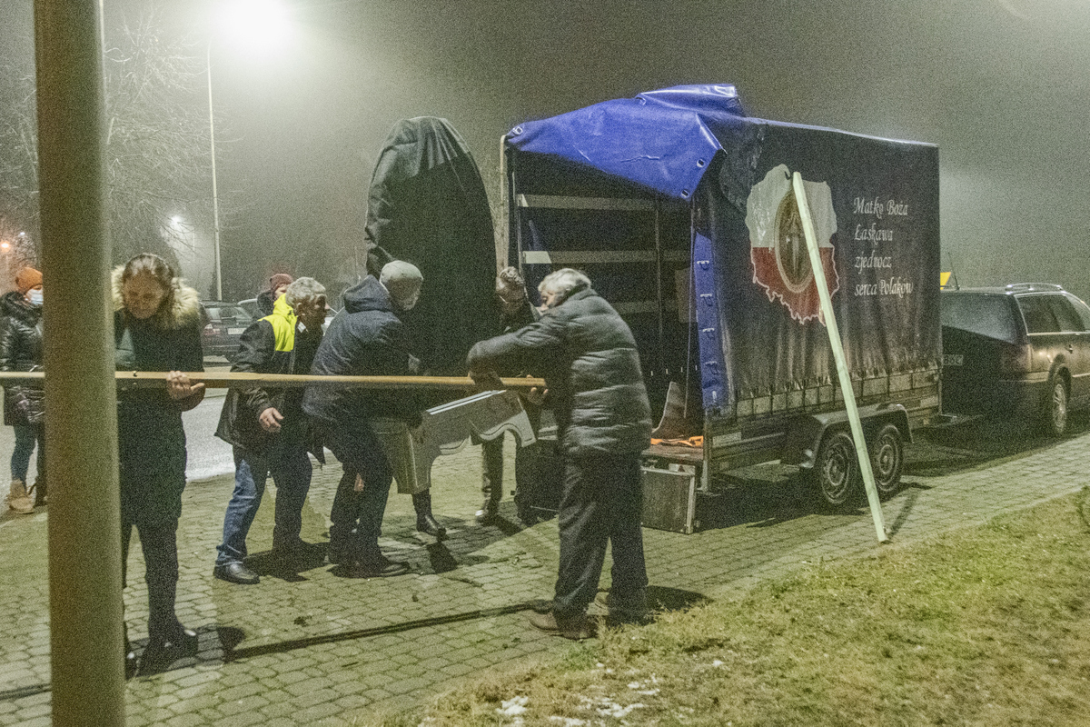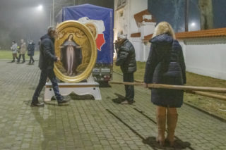 Koordynatorem pielgrzymowania Obrazu jest ks. kan. Jan Spólny, moderator Krajowej Wspólnoty Żywego Różańca, proboszcz par. Trójcy Świętej w Gończycach. Od 16 listopada obraz peregrynuje w parafiach przygranicznych. Pierwszym miejscem do którego trafił obraz Matki Bożej Łaskawej była Kuźnica Białostocka. Obraz przybył 15 grudnia do parafii św. Stanisława Biskupa Męczennika w Niemirowie. Proboszcz parafii ks. Dariusz Tworkowski z wielką radością przejął wizerunek od ks. Łukasza Rodzosia pracującego w parafii Gończyce. Obraz wniesiony został do świątyni przez żołnierzy, którzy strzegą Polskiej granicy w Niemirowie. Licznie zgromadzeni w kościele wierni z Niemirowa, Sutna i Adamowa trwali w modlitwie przed Obrazem prosząc Matkę Bożą o pokój na granicy. Wierni odmówili Koronkę do Miłosierdzia Bożego oraz Różaniec. Następnie odprawiona została Msza św. w intencji Ojczyzny oraz żołnierzy pełniących służbę na granicy. W kazaniu ks. Łukasz Rodzoś powiedział, że Pan Bóg kochając nas dał nam Matkę. Matkę, która nas kocha i pomaga nam w trudnych czasach. Nawiązał do wojny z bolszewią w 1920 r., mówiąc o roli jaką odegrała Matka Boża Łaskawa w zwycięstwie nad czerwoną zarazą. Nawiązał również do współczesnych nam czasów, w których króluje zło, odejście od Boga i wielkie zagubienie człowieka. Tak liczne trwanie w modlitwie parafian, świadczy o dużej wierze i ukochaniu naszej Ojczyzny. Wieczorem, tego samego dnia obraz Matki Bożej pojechał do kościoła w Tokarach, kolejnej parafii przygranicznej.