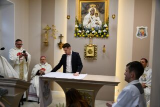 Ks. Piotr Jarosiewicz odczytał dekret biskupa drohiczyńskiego upamiętniający poświęcenie odnowionej kaplicy i nowego ołtarza. Dokument wskazuje, że projektantem i wykonawcą ołtarza jest Dariusz Gurtat. Natomiast do grona fundatorów należą: Bożena i Tadeusz Gołębiewscy, ks. Łukasz Gołębiewski, Marzenna i Tadeusz Hardej, Beata i Andrzej Jastrzębscy, Monika i Robert Sajnaj, Janina Plichta, Anna Wasiluk, Łukasz Wasiluk oraz pracownicy Caritas Diecezji Drohiczyńskiej.