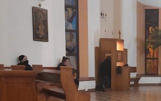 Podczas adoracji Najświętszego Sakramentu jak zwykle przywoływaliśmy Ducha Świętego, aby wszedł do wszystkich przestrzeni naszych serc i uporządkował je, leczył z różnych kompleksów i zranień, oczyszczał je z grzechów i ogarnął nas swoją Miłością. Dziękowaliśmy Jezusowi i prosiliśmy Go o wszelkie łaski potrzebne w życiu. Z chóru popłynęły piękne pieśni uwielbieniowe pod kierunkiem państwa Grochowskich, które ubogaciły refleksje ks. Tomasza i wprowadziły w modlitewny nastrój.