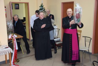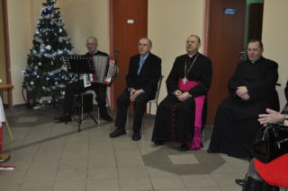 Uczestnicy z ogromną życzliwością przyjęli ks. biskupa oraz z zaangażowaniem i radością śpiewali kolędy, które w połączeniu z oprawą instrumentalną wprowadziły wszystkich w uroczysty nastrój. Ks. bp Tadeusz Pikus w słowie skierowanym do zgromadzonych powiedział o potrzebie miłości, którą należy umieć okazywać a także z wdzięcznością przyjmować. Takiej postawy uczy nas sam Jezus Chrystus.
