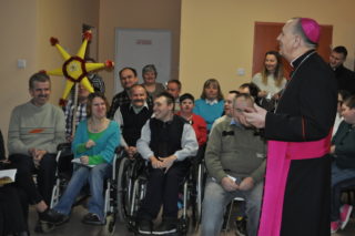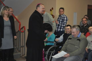 W dalszej części ks. bp podziękował wszystkim za miłe przywitanie, własnoręcznie zdobiony przez uczestników Warsztatów Terapii Zajęciowej szklany podarunek oraz życzył wszystkim wielu radości oraz sił w podejmowaniu codziennych wyzwań.