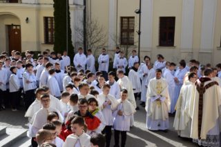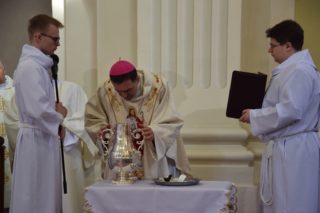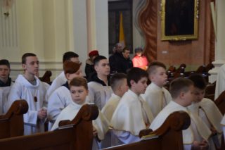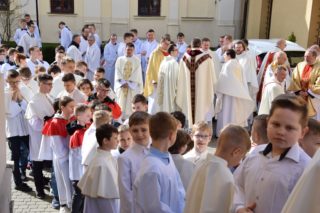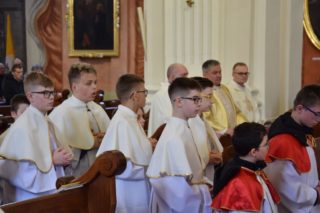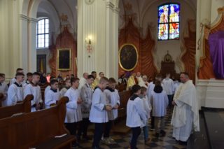 Ks. Biskup podkreślił również liczny udział służby liturgicznej, która wraz z duszpasterzami przybyła na wielkoczwartkową uroczystość. Część z nich bezpośrednio służyła przy ołtarzu. W sumie obecnych było ponad 140 ministrantów, lektorów oraz ceremoniarzy.