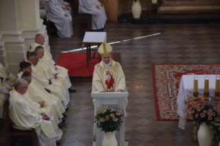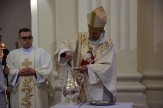 W homilii ks. Biskup podkreślił, że Wielki Czwartek jest dniem, w którym cały Kościół pochyla się z wdzięcznością nad tajemnicą Chrystusowego Kapłaństwa i tajemnicą wszczepienia w nie wybranych ludzi. W nawiązaniu do Liturgii Słowa zauważył, jak starotestamentalne proroctwo z Księgi Proroka Izajasza zostało wypełnione przez Chrystusa, który jawi się jako Syn Boży, Mesjasz, Zbawiciel świata. „Chrystus, oddając życie za lud, oczyścił go od grzechów i uświęcił. Ten lud ma teraz udział w proroczym namaszczeniu Jezusa, którego Ewangelię – Dobrą Nowinę przyjmuje z wiarą” – powiedział ks. Biskup. Wskazał również na znaczenie oleju namaszczenia, który człowiek przyjmuje w sakramencie chrztu świętego. Łączy ono człowieka z Chrystusem i udziela łaski wiary oraz włącza w kapłaństwo powszechne ludu Bożego. Istnieje również kapłaństwo ministerialne, w które wybrani, powołani przez Pana mężczyźni, zostają włączeni poprzez święcenia.