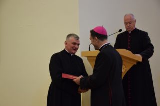 Wręczenie stosowych dekretów miało miejsce na auli seminaryjnej. Poprzedził je moment świątecznych życzeń. W imieniu kapłanów diecezji drohiczyńskiej wielkanocne życzenia obecnemu ks. bp. Piotrowi Sawczukowi, jak również biskupom seniorom, złożył ks. prał. Bogusław Kiszko. Pomimo trudnej sytuacji spowodowanej tragizmem wojny na Ukrainie życzył pokoju i radości, które płyną od Zmartwychwstałego Chrystusa. Ks. Biskup natomiast w słowach życzeń podkreślił wartość wiary w moc Zmartwychwstałego Pana. To ona pozwala przetrwać najtrudniejsze warunki. Przy tej okazji podziękował również kapłanom za ich zaangażowanie w pomoc, jaką niosą uchodźcom. Jak zauważył, osoby te potrzebują pomocy nie tylko materialnej, ale również wsparcia duchowego.