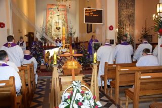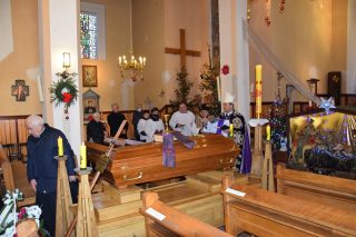 Księża, siostry zakonne oraz wierni świeccy otaczali modlitwą zmarłego Kapłana, podczas Mszy św. pogrzebowej celebrowanej pod przewodnictwem ks. bpa Piotra Sawczuka. Wśród kapłanów nie zbrakło dziekana ciechanowieckiego ks. kan. Tadeusza Kryńskiego oraz miejscowego proboszcza ks. Grzegorza Jabłońskiego.