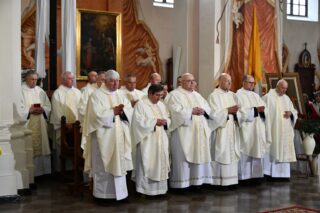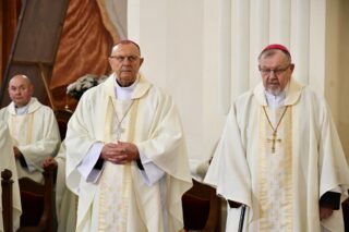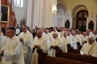 Biskupi, kapłani, osoby życia konsekrowanego, alumni Wyższego Seminarium Duchownego, przedstawiciele rożnych wspólnot, ruchów i stowarzyszeń diecezjalnych, licznie zgromadzona służba liturgiczna, poczty sztandarowe oraz wierni świeccy 22 kwietnia przybyli do drohiczyńskiej katedry, aby pod przewodnictwem bp. Piotra Sawczuka dziękować za życie i pontyfikat śp. papieża Franciszka oraz modlić się o spokój jego duszy.