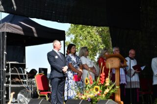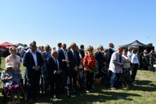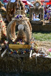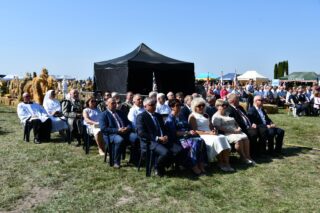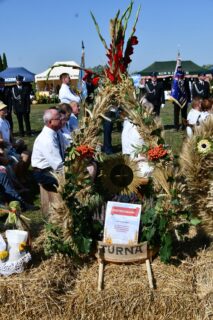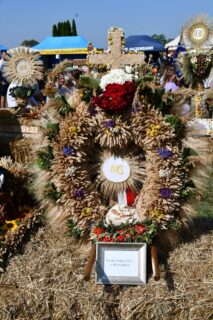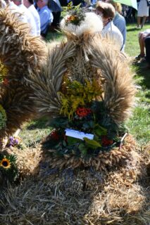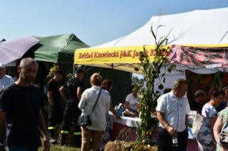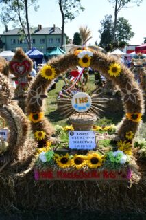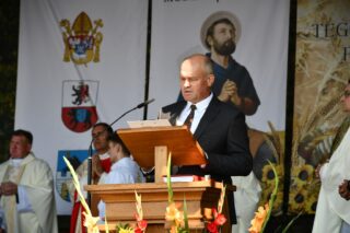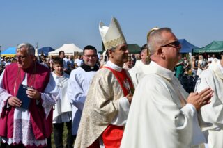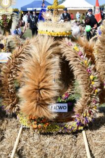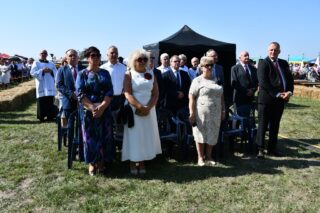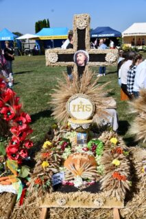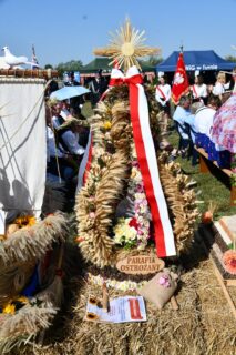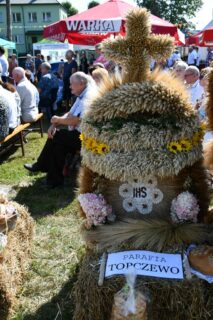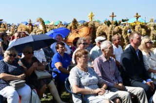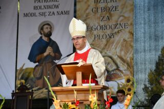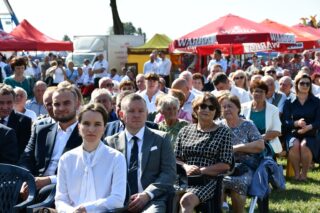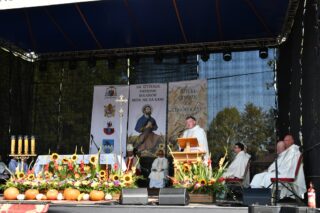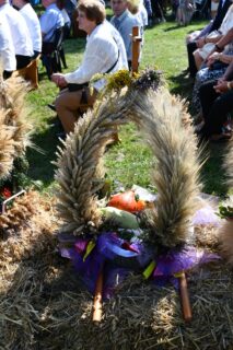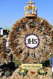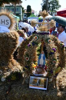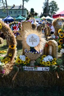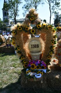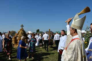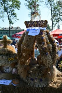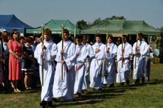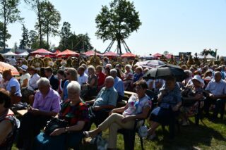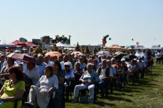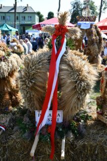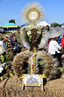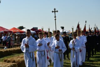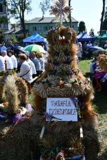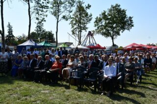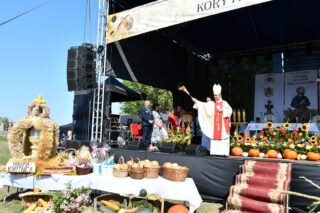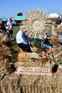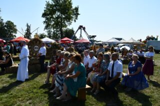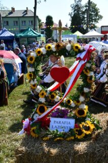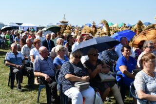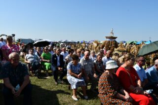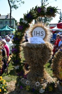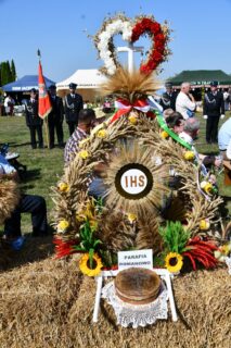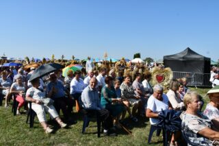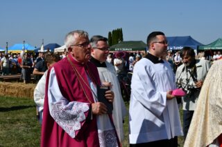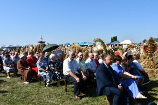 W sobotę 7 września na placu przykościelnym zgromadzili się duchowni, przedstawiciele parlamentu RP, władze państwowe oraz samorządowe różnych szczebli, służby mundurowe, poczty sztandarowe, delegacje z wieńcami z poszczególnych parafii, rolnicy, sadownicy, przetwórcy żywności, Koła Gospodyń Wiejskich, twórcy kultury ludowej oraz wiele osób, którym sprawy rolnictwa są bliskie sercu, by wspólnie dziękować Bogu za tegoroczne plon. Słowa powitania skierowali gospodarze miejsca: ks. kan. Bernard Toruński – proboszcz oraz Grażyna Chrupek – wójt. Na prośbę starostów dożynek biskup pobłogosławił ponad osiemdziesiąt wieńców dożynkowych.