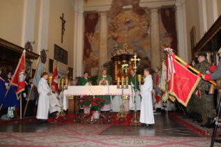 Obchody rozpoczęła Msza św. odprawiona w parafii pw. Wniebowzięcia Najświętszej Maryi Panny w Węgrowie. Eucharystii przewodniczył i kazanie powiedział ks. bp. Tadeusz Pikus. W wygłoszonym słowie Bożym  nawiązał m.in. do historii Hioba, która ukazuje życie każdego człowieka jako wojowanie. Jak podkreślił ks. Biskup w swoim życiu człowiek może stoczyć różne rodzaje walk. Ważne jest  jednak, aby  każdy z  nas w swoim wojowaniu zjednoczył się z Chrystusem i przyjął jego miłość.  Odniósł się również do bitwy pod Węgrowem, wpisującej się w cały kontekst historii Polski, w której  wiele razy trzeba było walczyć o wolność i niepodległość. Jak powiedział ka. Biskup należy pamiętać o tym, aby zawsze mieć Ojczyznę w sercu, zarówno w czasie wojny, jak i w czasie pokoju. Miłość do ojczyzny rodzi się bowiem w sercu, wyraża się słowem, ale żyje czynem – mówił Ekscelencja.