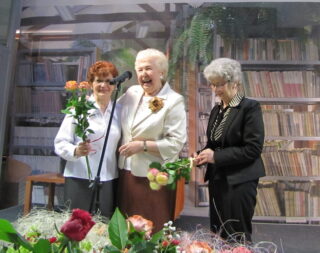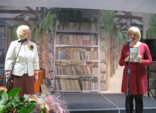 Spotkanie rozpoczęła Hanna Lecyk Dyrektor Miejskiej Biblioteki Publicznej. Przywitała przybyłych gości i bohaterkę wieczoru. Pani Danusia, mimo wielu lat pracy z zespołem, który występował w ciągu 12 lat istnienia już 290 razy, a zakładała go będąc już na emeryturze, jest wciąż pełna wigoru. Jak powiedziała Pani Dyrektor niejedna dwudziestolatka mogłaby jej pozazdrościć ekspresji, weny i optymizmu.