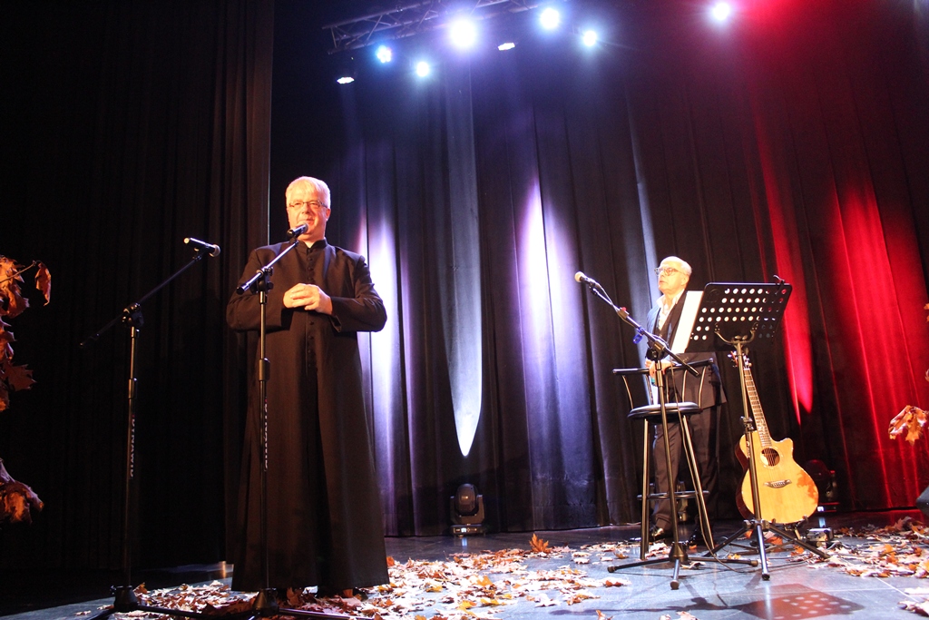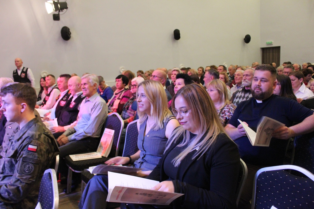 Kolejnym punktem wieczoru był koncert patriotyczny w wykonaniu Jana Pospieszalskiego. Wydarzenie odbyło się w wypełnionej po brzegi sali MGOK. Była to nie tyko okazja, by posłuchać pieśni w wykonaniu zaproszonego gościa, ale by wspólnie śpiewać i w ten muzyczny sposób wędrować śladami historii Polski. Pomocne były śpiewniki z których mogli korzystać wszyscy goście. Jan Pospieszalski każdą pieśń opatrywał bogatym komentarzem, dzielił się osobistymi wspomnieniami i przeżyciami, opowiadał o historii swojej rodziny i wydarzeniach z historii najnowszej, w których jako dziennikarz uczestniczył osobiście. Opowieści te były szczególną lekcją historii i patriotyzmu, a także świadectwem wiary.