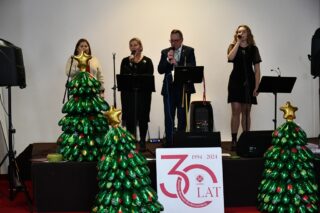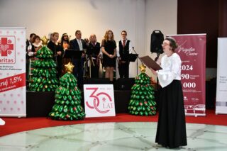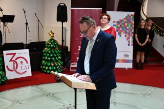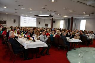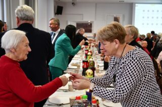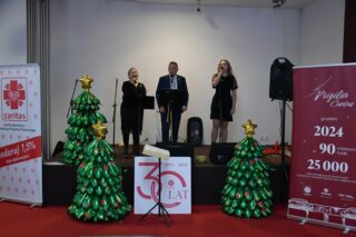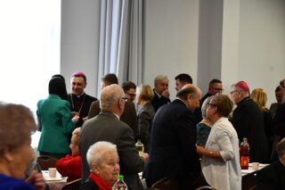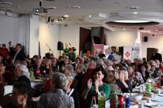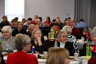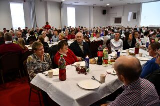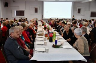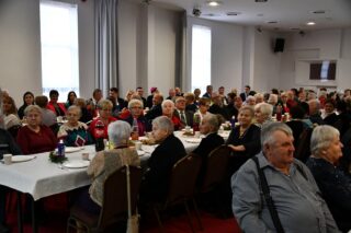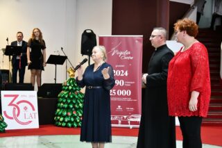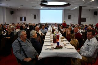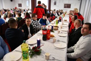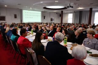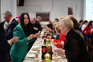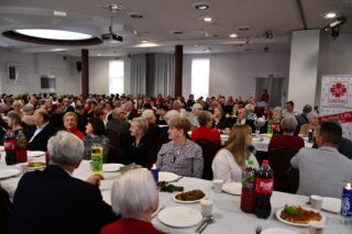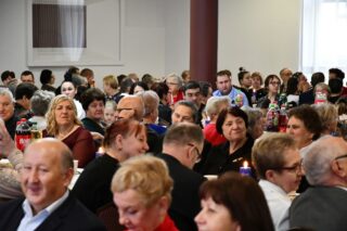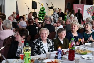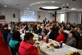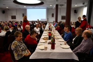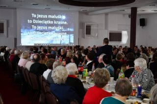 Sala hotelu Unibus w Bielsku Podlaskiem stała się miejscem, gdzie 19 grudnia 2024 r. blisko 300 osób wzięło udział w wigilijnym spotkaniu zorganizowanym przez Caritas Diecezji Drohiczyńskiej.