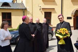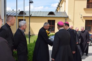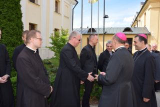 Bp Piotr Sawczuk witając i pozdrawiając przybyłych pokrótce zaprezentował drogę swojego kapłańskiego powołania. Podkreślił, że zarówno w jego życiu, jak i w historii diecezji rozpoczyna się nowy rozdział. Poprosił o modlitwę, aby jak najlepiej mógł podjąć i realizować powierzone mu zadania. Dalsza część spotkania miała miejsce w Kurii diecezjalnej oraz pałacu biskupim.