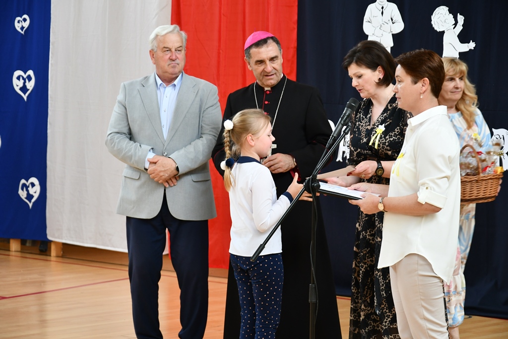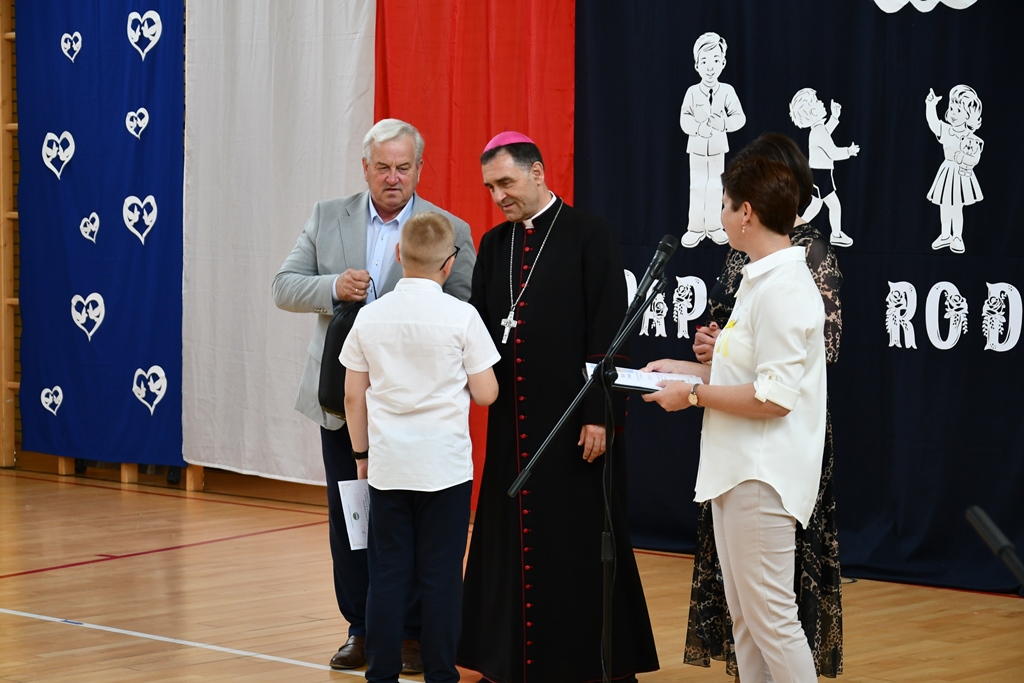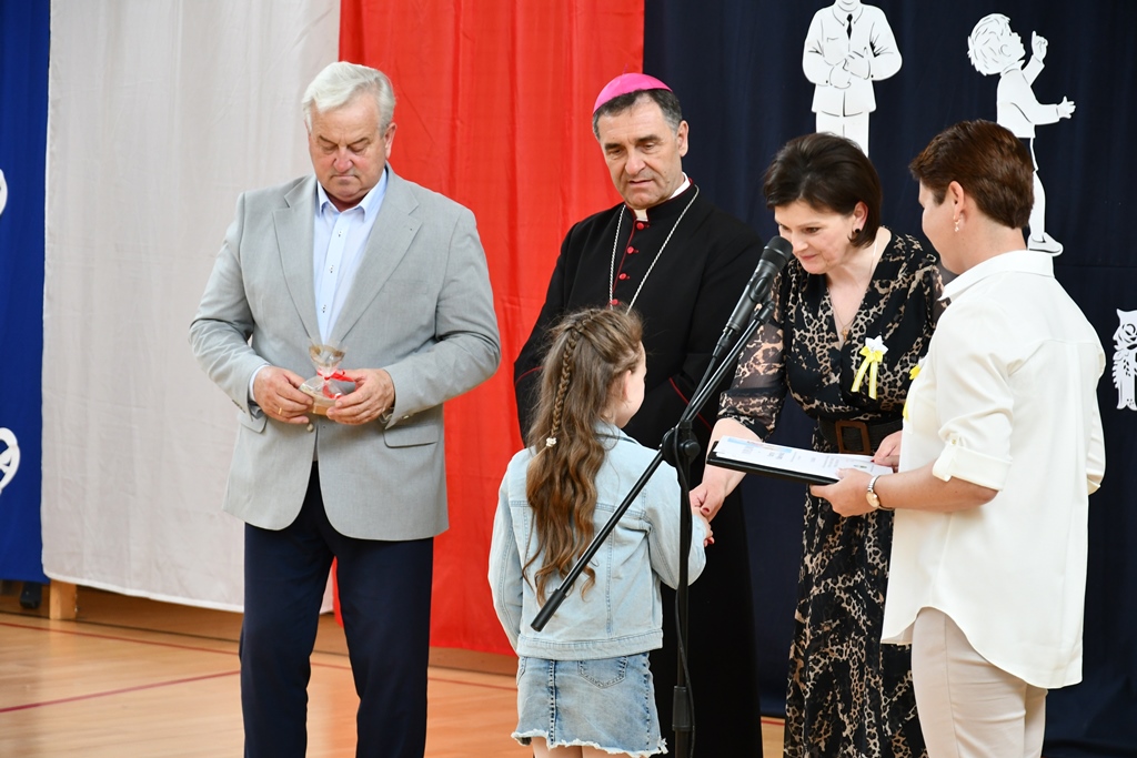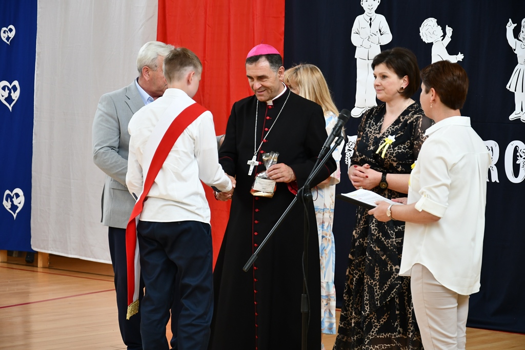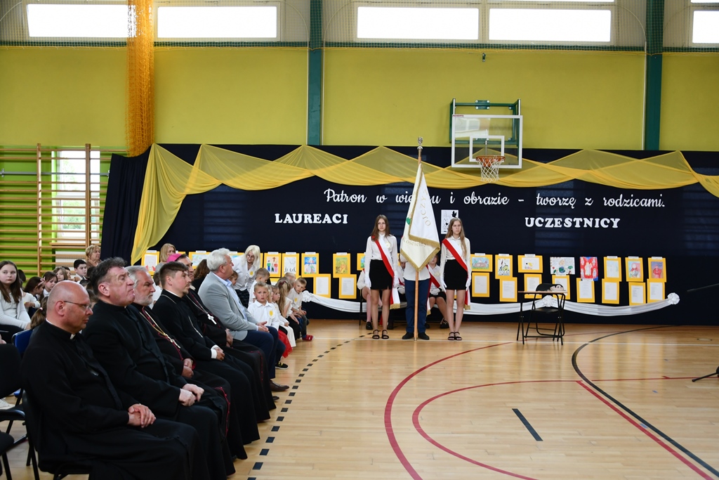 Biskup odwiedził również Szkołę Podstawową w Łubinie Kościelnym. Nosi ona imię Jana Pawła II. Od wielu lat Szkoła jest organizatorem konkursu literacko – plastycznego „Patron w wierszu i obrazie – tworzę z rodzicami”. Jest on skierowany do Podlaskiej Rodziny Szkół im. Jana Pawła II. Wizytacja biskupa zbiegła się z podsumowaniem XII edycji konkursu, który odbywał się pod hasłem „Święty Jan Paweł II – Papież Rodziny”. Przybyłych gości powitała dyrektor Szkoły Anna Żochowska. Uczniowie klasy II i III przygotowali program słowno-muzyczny nawiązujący do tematu konkursu. Ceremonii wręczenia nagród i dyplomów laureatom oraz wszystkim uczestnikom konkursu dokonał bp Piotr Sawczuk, Walenty Korycki – wójt gminy Bielsk Podlaski oraz Anna Żochowska – dyrektor Szkoły. Biskup wyraził uznanie z powodu podjęcia ciekawej inicjatywy, jaką jest konkurs kierowany do rodziny szkół św. Jana Pawła II. Angażuje on nie tylko uczniów, ale również rodziców. Prace konkursowe wydawane są w formie książkowej.