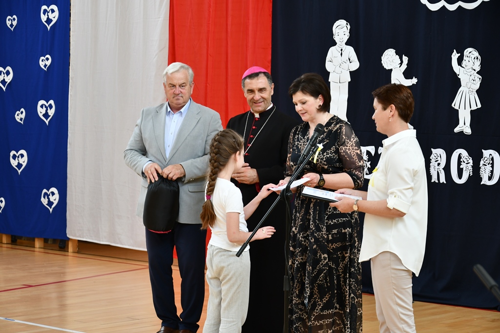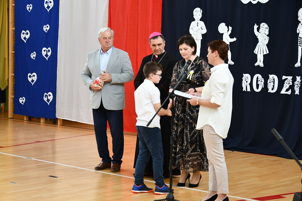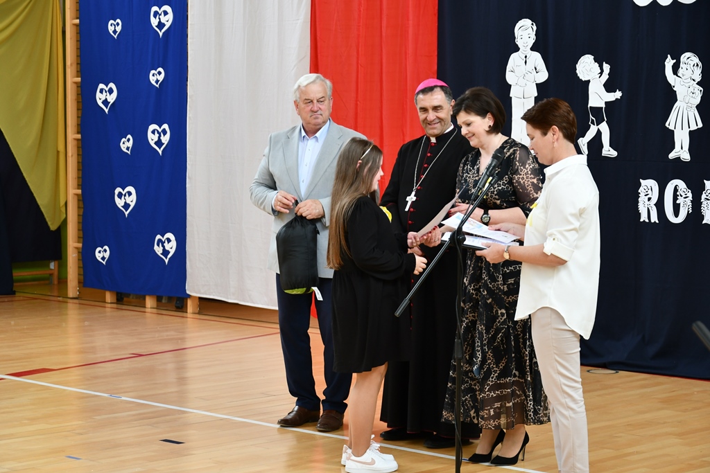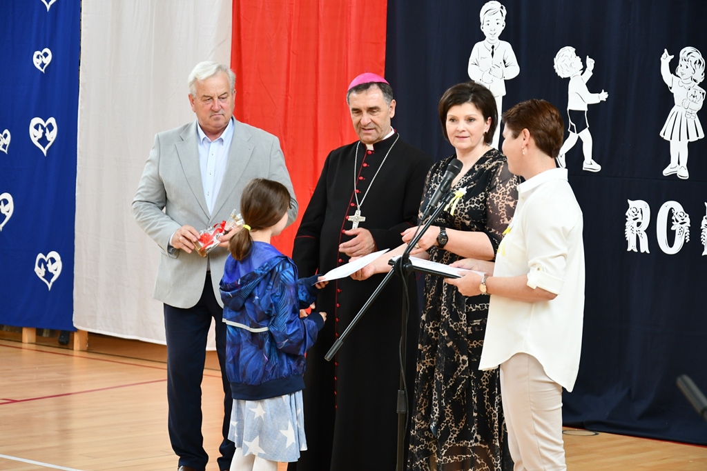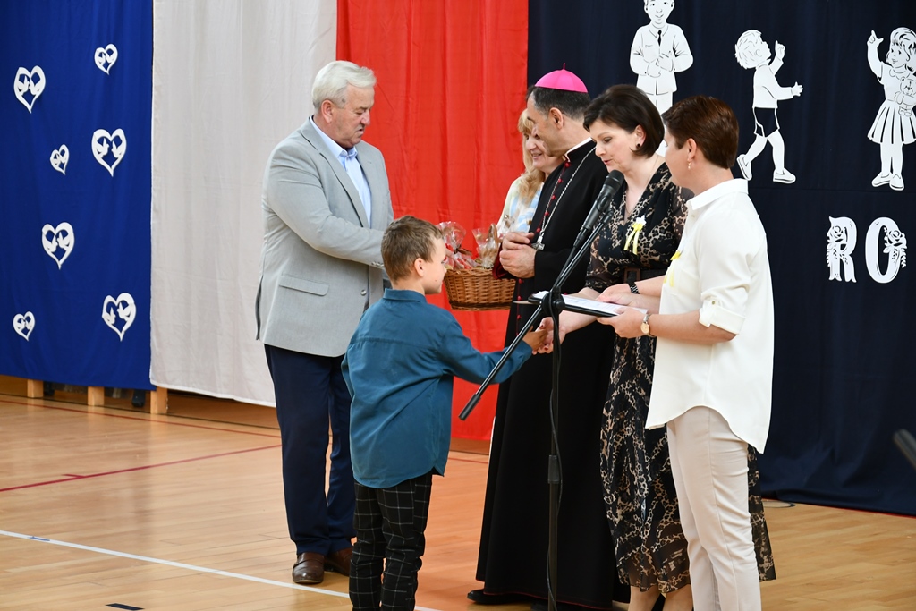 Biskup odwiedził również Szkołę Podstawową w Łubinie Kościelnym. Nosi ona imię Jana Pawła II. Od wielu lat Szkoła jest organizatorem konkursu literacko – plastycznego „Patron w wierszu i obrazie – tworzę z rodzicami”. Jest on skierowany do Podlaskiej Rodziny Szkół im. Jana Pawła II. Wizytacja biskupa zbiegła się z podsumowaniem XII edycji konkursu, który odbywał się pod hasłem „Święty Jan Paweł II – Papież Rodziny”. Przybyłych gości powitała dyrektor Szkoły Anna Żochowska. Uczniowie klasy II i III przygotowali program słowno-muzyczny nawiązujący do tematu konkursu. Ceremonii wręczenia nagród i dyplomów laureatom oraz wszystkim uczestnikom konkursu dokonał bp Piotr Sawczuk, Walenty Korycki – wójt gminy Bielsk Podlaski oraz Anna Żochowska – dyrektor Szkoły. Biskup wyraził uznanie z powodu podjęcia ciekawej inicjatywy, jaką jest konkurs kierowany do rodziny szkół św. Jana Pawła II. Angażuje on nie tylko uczniów, ale również rodziców. Prace konkursowe wydawane są w formie książkowej.