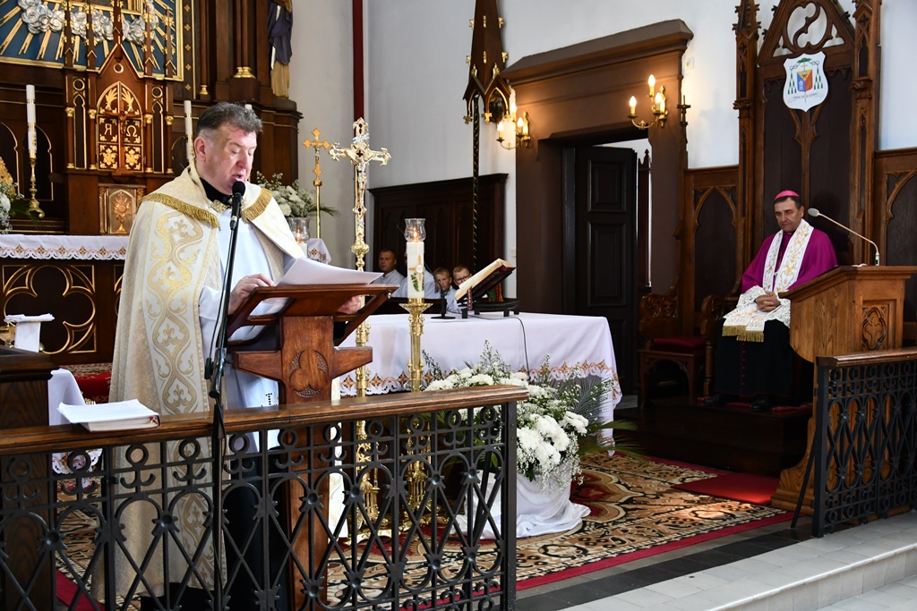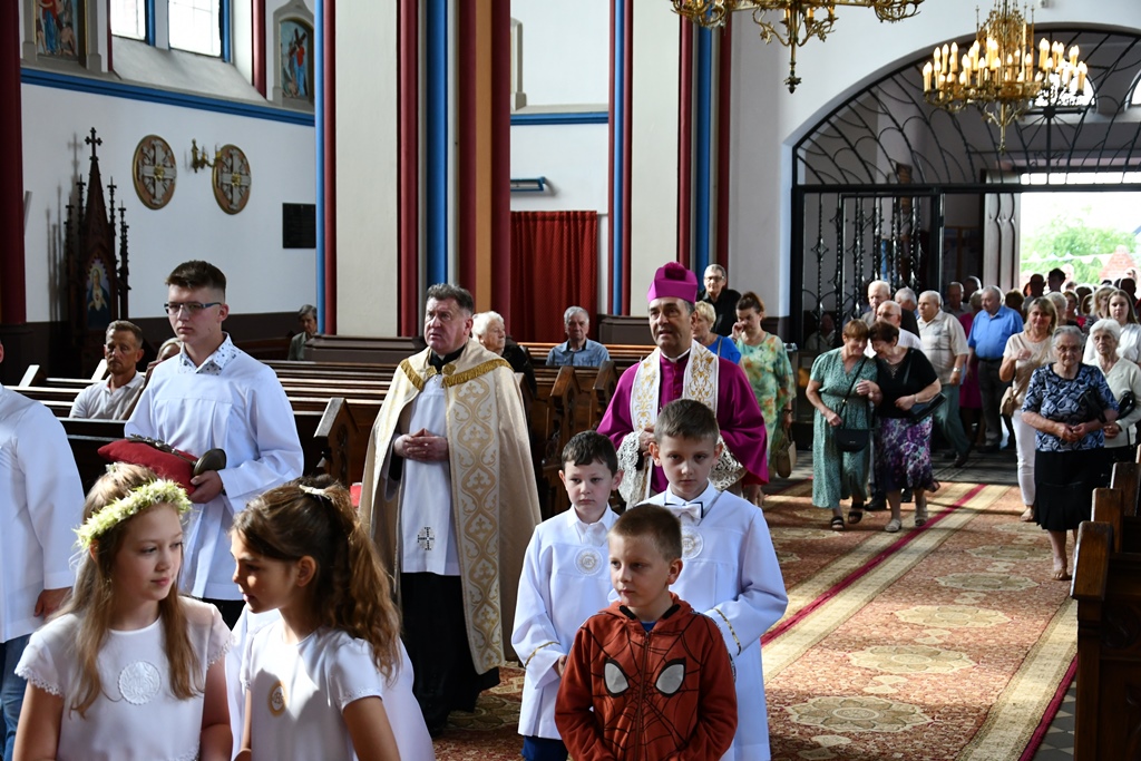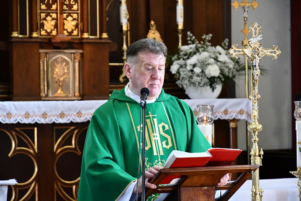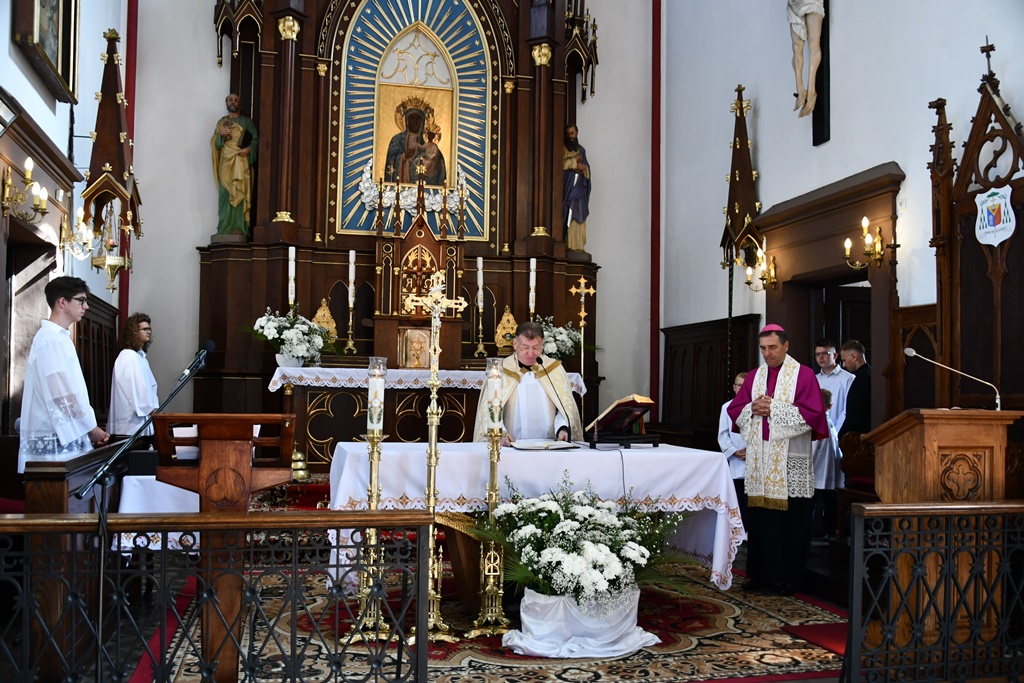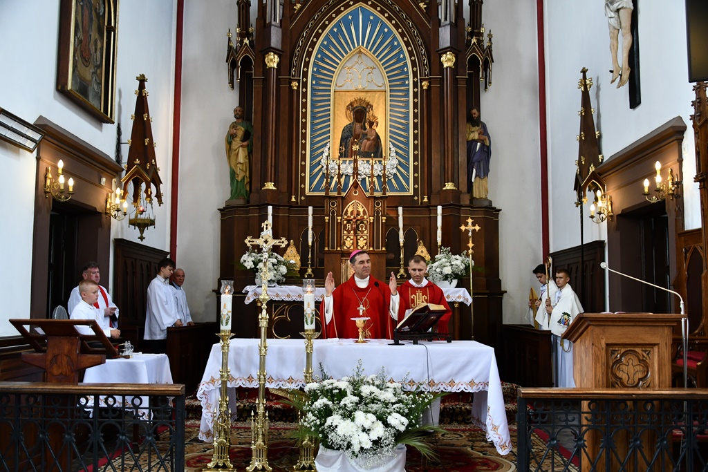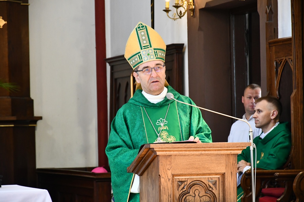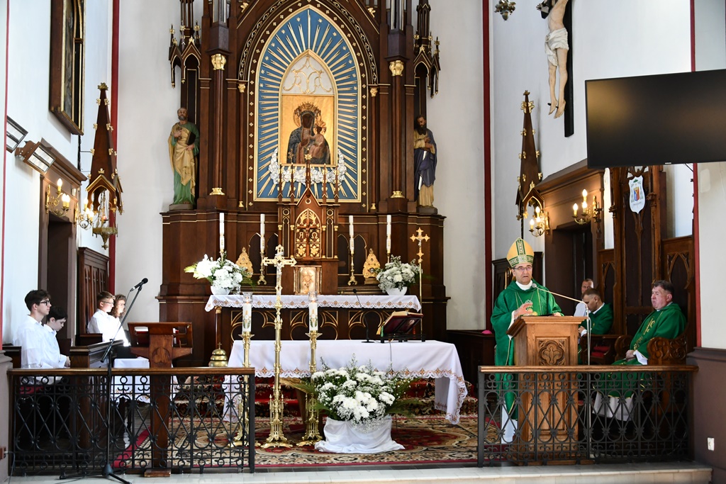 Biskup otaczał swoją modlitwą parafię celebrując w jej intencji Eucharystię. W homilii pasterz diecezji nakreślił zarys historii parafii, która sięga końca XV w. W tym kontekście zachęcał do podjęcia refleksji nad kondycją duchową i stanem wiary. „Czy budujemy swoje życie na tym samym fundamencie, na którym budowali je nasi rodzice i dziadkowie? Oni modlili się, pracowali i cierpieli w jedności z Bogiem i dla dobra Kościoła. Na naszych ziemiach były bowiem w przeszłości piękne przykłady heroicznej wprost wiary i miłości” – powiedział.