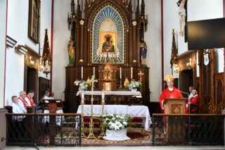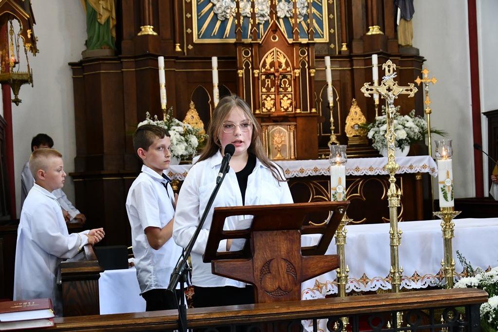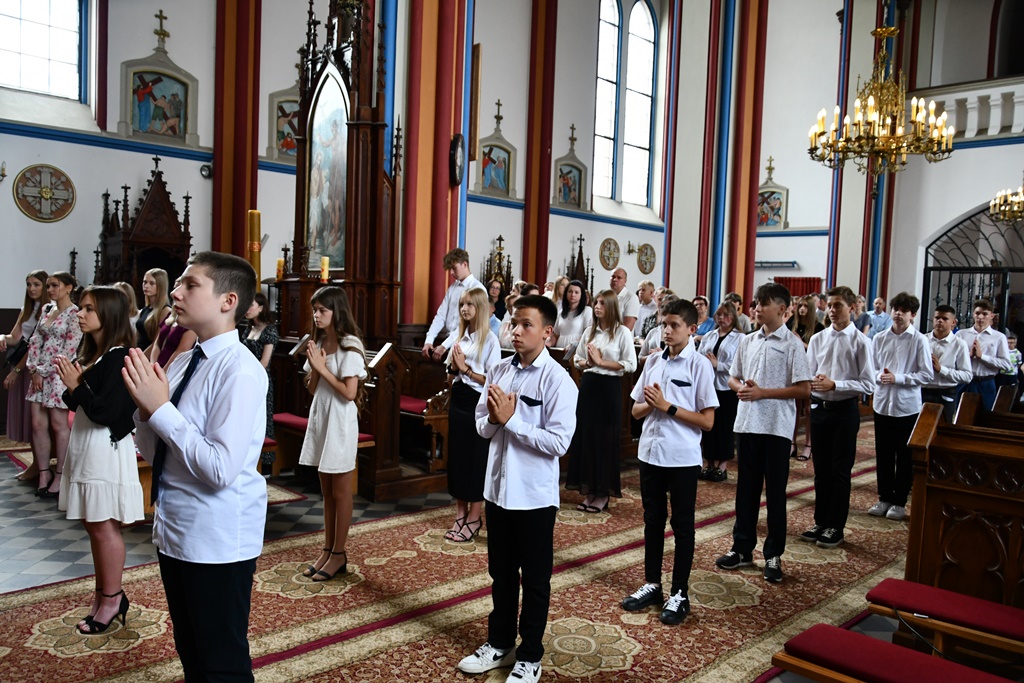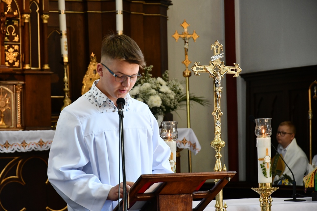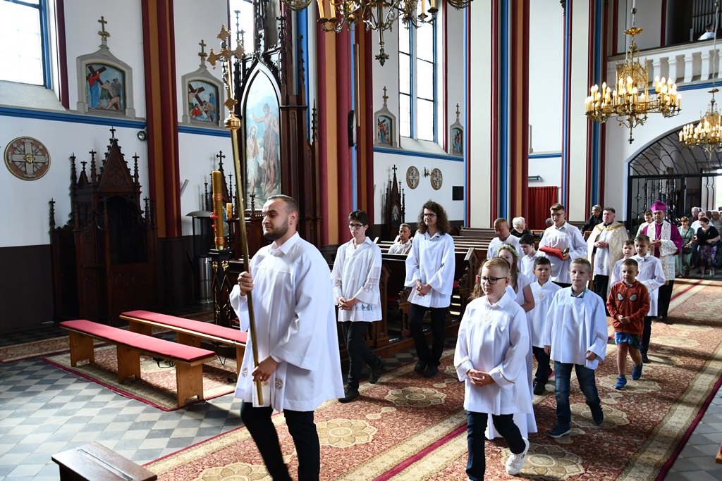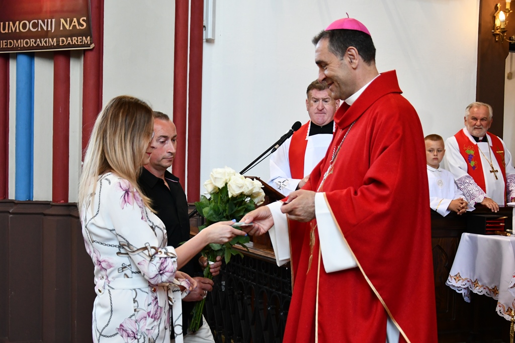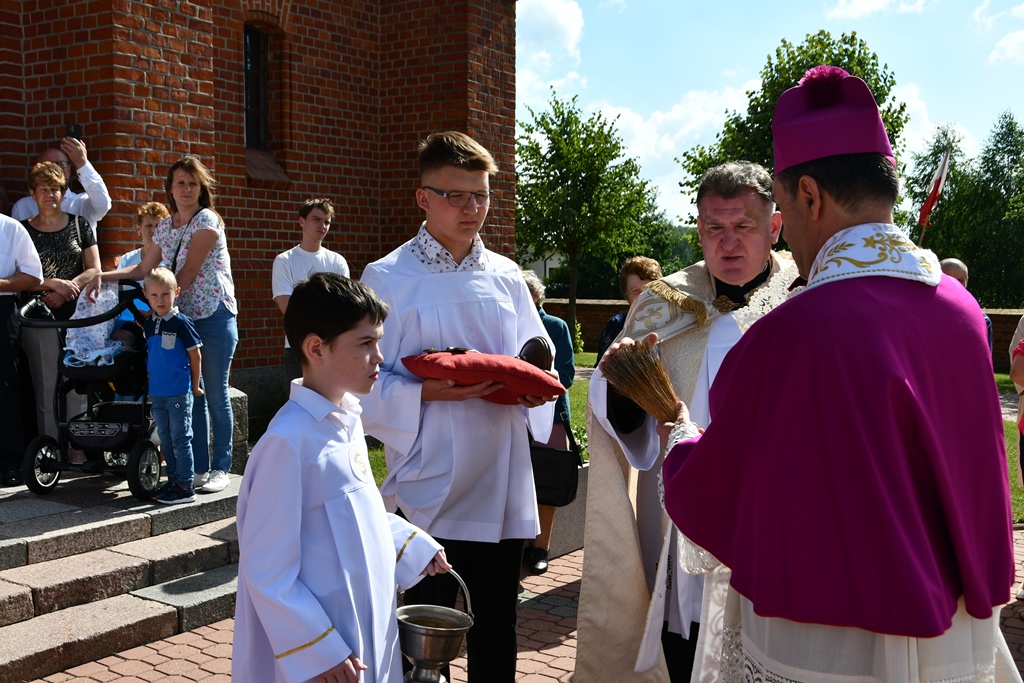 Biskup otaczał swoją modlitwą parafię celebrując w jej intencji Eucharystię. W homilii pasterz diecezji nakreślił zarys historii parafii, która sięga końca XV w. W tym kontekście zachęcał do podjęcia refleksji nad kondycją duchową i stanem wiary. „Czy budujemy swoje życie na tym samym fundamencie, na którym budowali je nasi rodzice i dziadkowie? Oni modlili się, pracowali i cierpieli w jedności z Bogiem i dla dobra Kościoła. Na naszych ziemiach były bowiem w przeszłości piękne przykłady heroicznej wprost wiary i miłości” – powiedział.