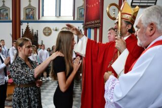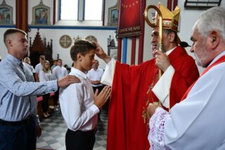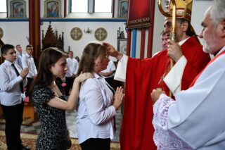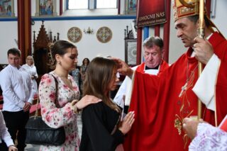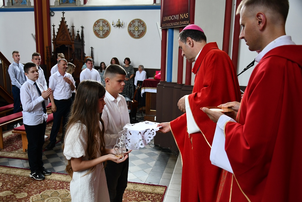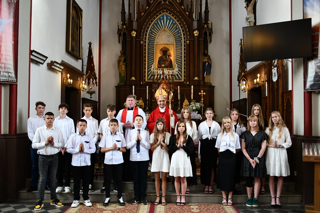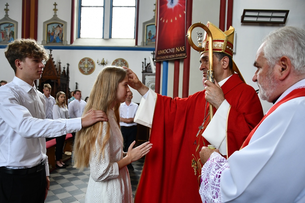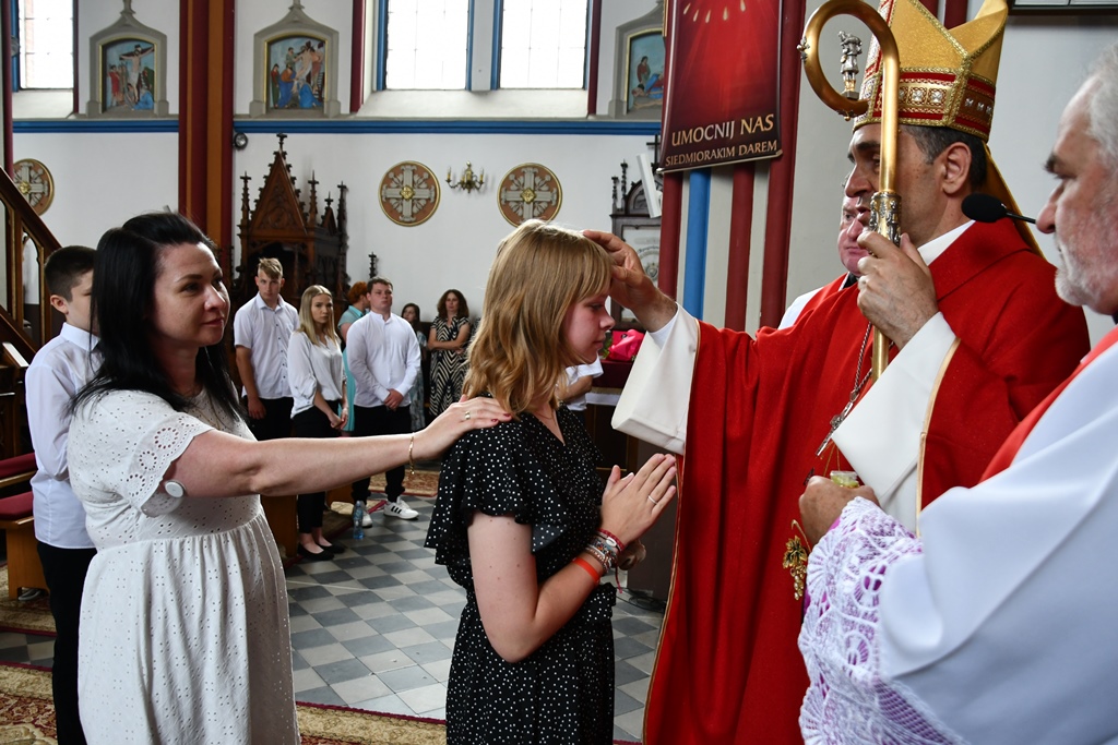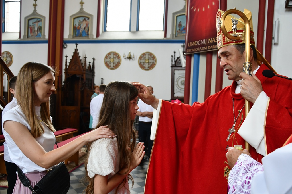Podczas kolejnej Mszy św. pasterz diecezji siedemnastoosobowej grupie młodzieży udzielił sakramentu bierzmowania. Z prośbą o jego udzielenie zwrócili się przedstawiciele rodziców. Bierzmowani aktywnie uczestniczyli w liturgii. Na Eucharystii był obecny ks. kan. kmdr por. Witold Kosiński. Młodzież podziękowała biskupowi za udzielenie sakramentu. Po Mszy św. biskup spotkał się z Radą Parafialną.