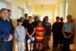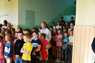 Następnego dnia, w święto św. Stanisława Kostki biskup ponownie gościł w Czeremsze. Pierwszym punktem wizyty bp. Piotra był Zespół Szkolno – Przedszkolny w Czeremsze. Został tam powitany przez dyrektor placówki Annę Wichowską. Następnie uczniowie przywitali biskupa słowami oraz śpiewając kilka piosenek, w tym „Barkę”. W słowie skierowanym do dzieci i młodzieży, bp Piotr przypomniał postać św. Stanisława Kostkę, patrona dnia. Pokazał, że św. Stanisław chciał za wszelką cenę podobać się Bogu i Jemu przede wszystkim służyć. Odrzucając życie zamożne i pełne władzy zapragną słuchać Pana Boga i Jego przede wszystkim kochać. Zachęcił dzieci i młodzież, aby w nowym roku szkolnym, oprócz nowej wiedzy z zakresu przedmiotów szkolnych, z radością poznawała również Pana Boga.