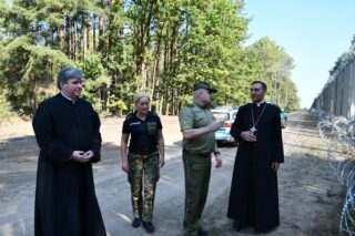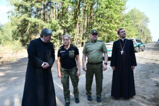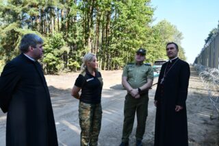 Następnie bp Piotr odwiedził posterunek Straży Granicznej w Połowcach. Tam powitał go komendant ppłk. Adam Jarosz oraz por. Beata Znaczko. Pasterz odwiedził budynki Straży Granicznej. Zapoznał się z trudnymi warunkami pracy strażników granicznych, zwłaszcza w kontekście kryzysu na granicy polsko – białoruskiej. Miał możliwość zobaczenia zapory zbudowanej na granicy oraz życzył powodzenia strażnikom w ich trudnej i odpowiedzialnej pracy.