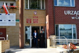 Przedostatnim punktem programu była wizyta w Urzędzie Gminy Czeremcha. Na jej schodach, pasterza diecezji powitał Jerzy Wasiluk – wójt gminy Czeremcha wraz z Ireneuszem Leoniukiem – sekretarzem gminy. Bp Sawczuk spotkał się także ze wszystkimi pracownikami urzędu. Podczas spotkania wójt gminy podzielił się z biskupem tym co udało się dotychczas zrobić. Szczególnie cieszył się z działalności ośrodka dla osób z autyzmem, który działa i pomaga osobom z trzech gmin. Biskup Piotr podziękował wszystkim pracownikom za ich pracę, życzył wiele cierpliwości i powodzenia w wypełnianiu ich obowiązków.