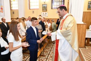 Podczas Mszy św. bp Piotr udzielił sakramentu bierzmowania 8 osobom. Na zakończenie Mszy św. słowa wdzięczności dla biskupa i proboszcza wyrazili rodzice. Ks. Domaraczeńko podziękował biskupowi za wizytację kanoniczną i prosił o modlitwę w intencji parafii.
