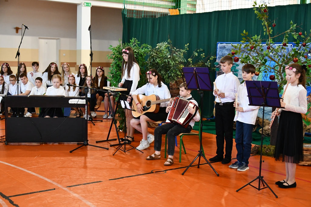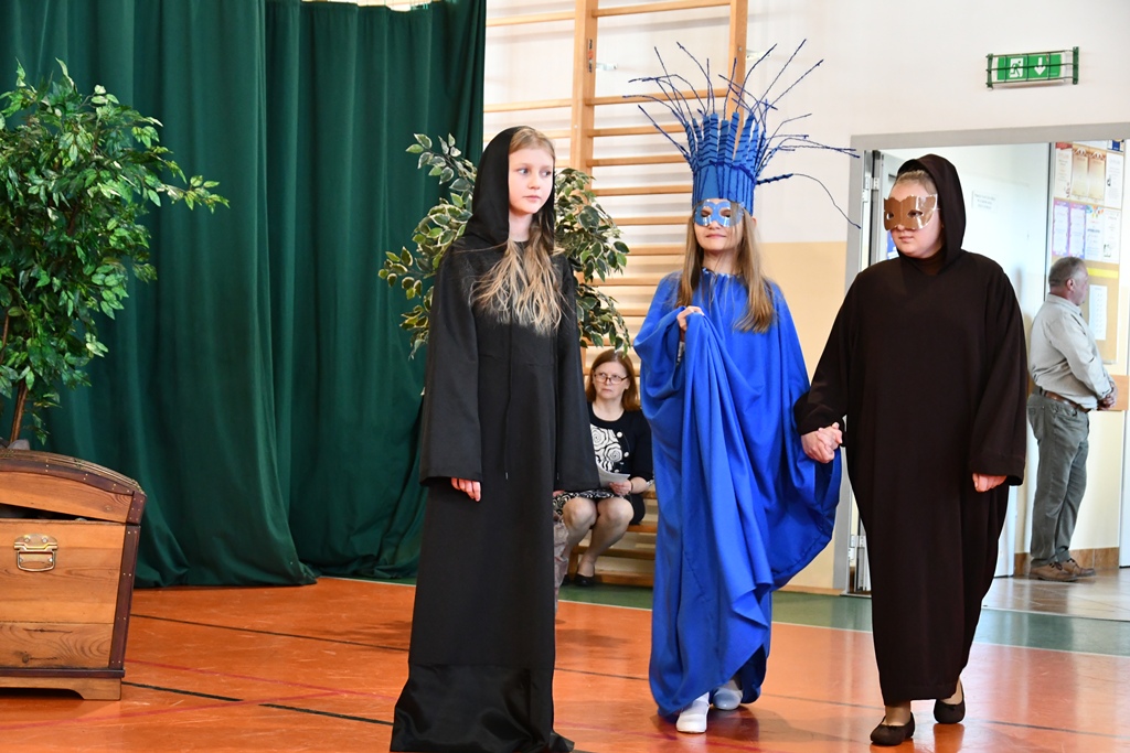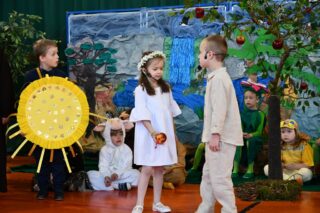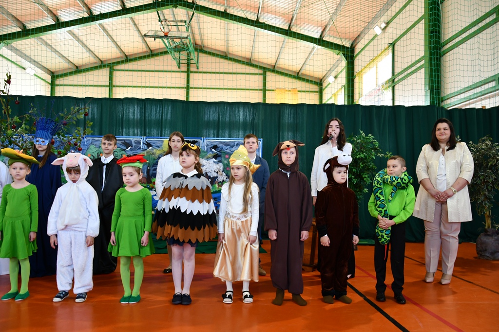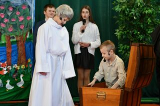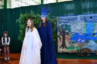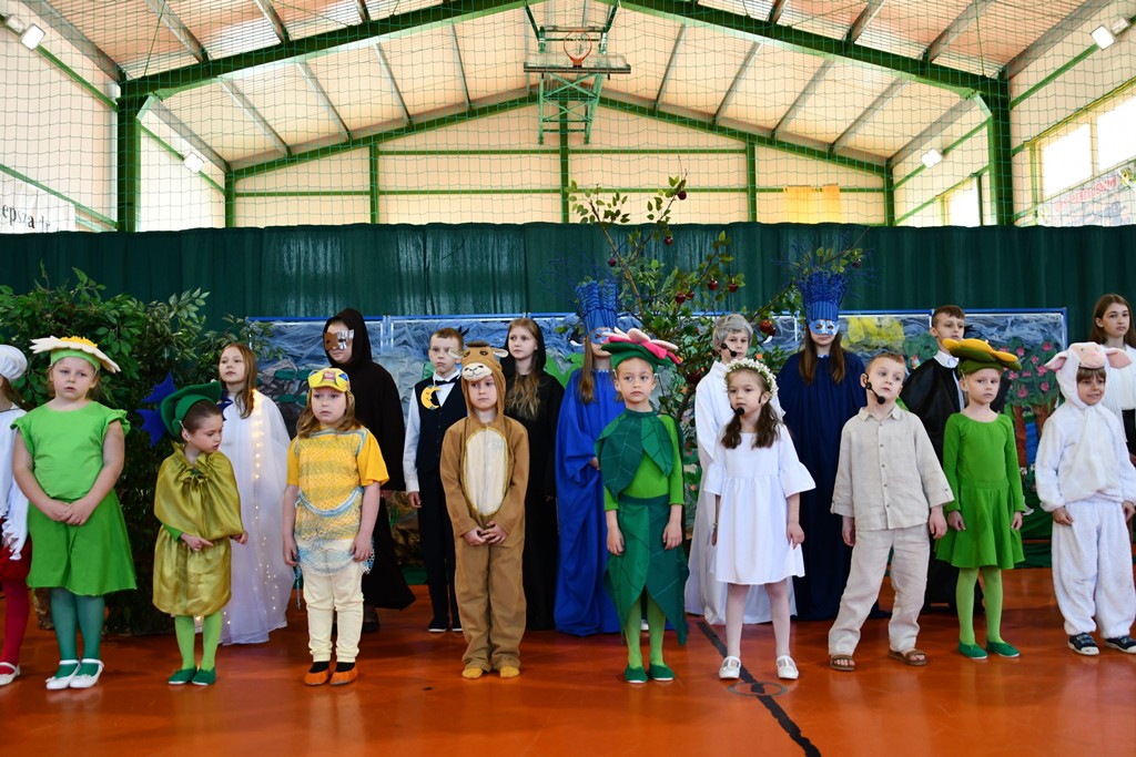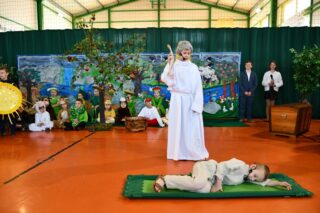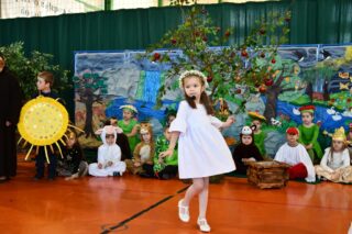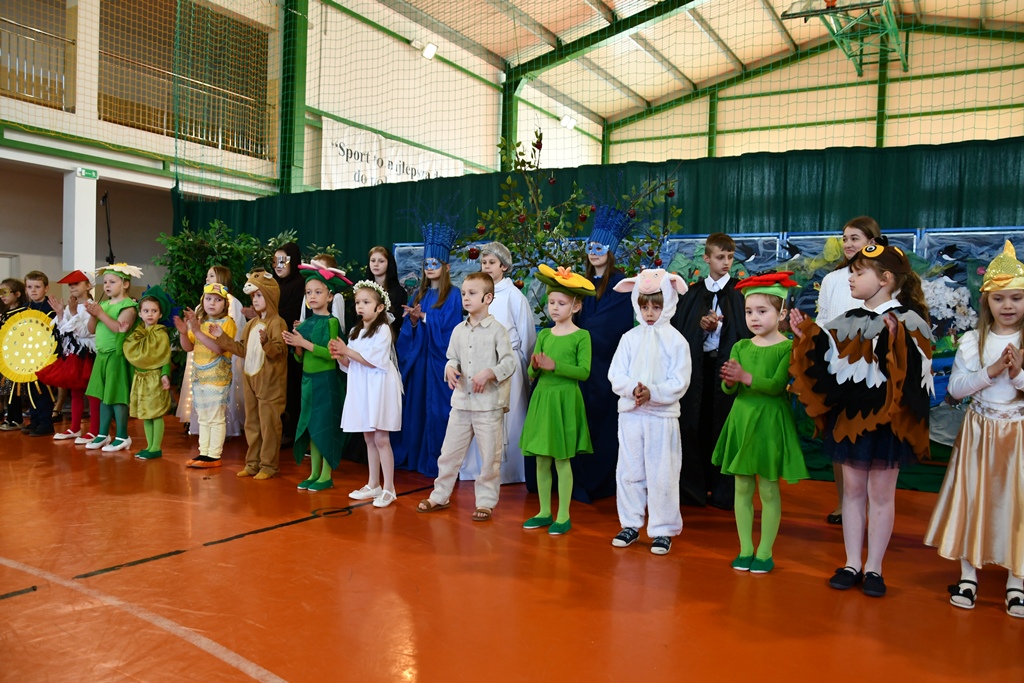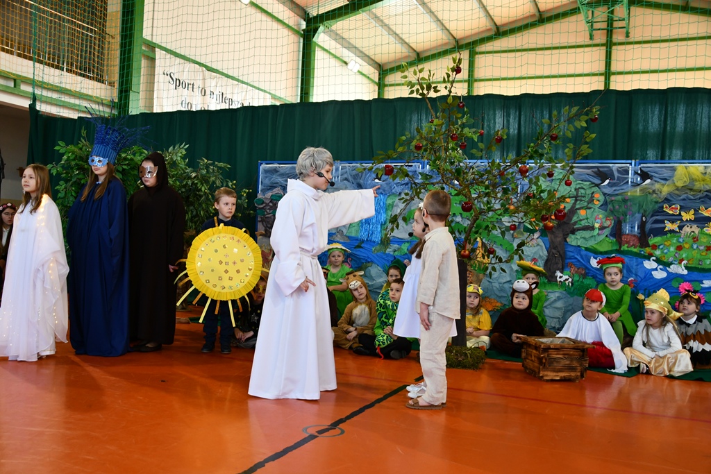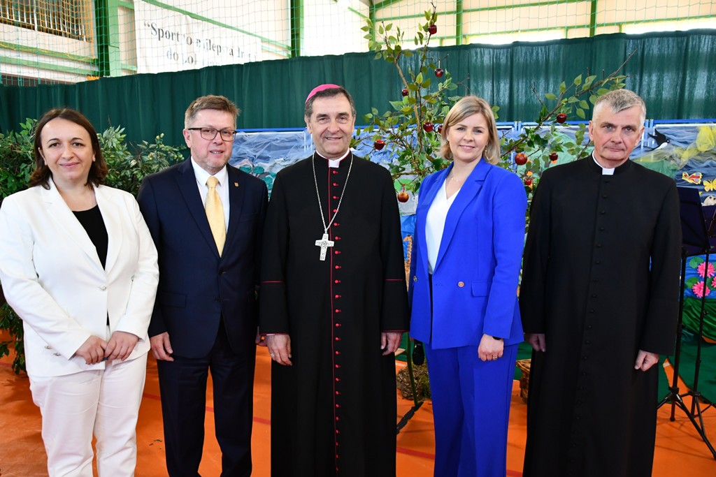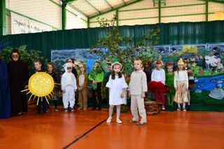 Kolejny dzień wizytacji rozpoczęły odwiedziny Szkoły Podstawowej. Słowa powitania skierował wójt gminy Perlejewo Jakub Wierzbicki, przedstawicie uczniów, rodziców oraz dyrekcja Szkoły. Aneta Leszczyńska – dyrektor Szkoły – zaprosiła wszystkich do obejrzenia części artystycznej zatytułowanej „Z prochu i żebra”. Bogata i starannie przygotowana scenografia, dopracowane stroje a przede wszystkim profesjonalna zaangażowanie i gra małych artystów przeniosła wszystkich do momentu stworzenia świata i powołania do istnienia człowieka. Ciekawymi tekstami i utworami muzycznymi artyści ukazali ponadczasową wartość rodziny. Spektakl został przygotowany pod czujnym okiem Lilii Wojtkowskiej przy współpracy wielu osób. Wystąpiła również schola oraz zespół muzyczny przygotowany pod kierunkiem Łukasza Kraujutowicza. Biskup wyraził radość i wdzięczność za przygotowanie tak imponującego przedstawienia. Udzielił zebranym pasterskiego błogosławieństwa. Nie zabrakło także czasu na rozmowę z gronem pedagogicznym.