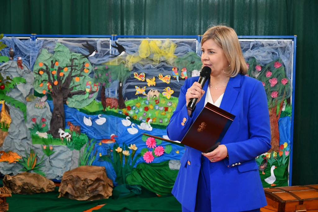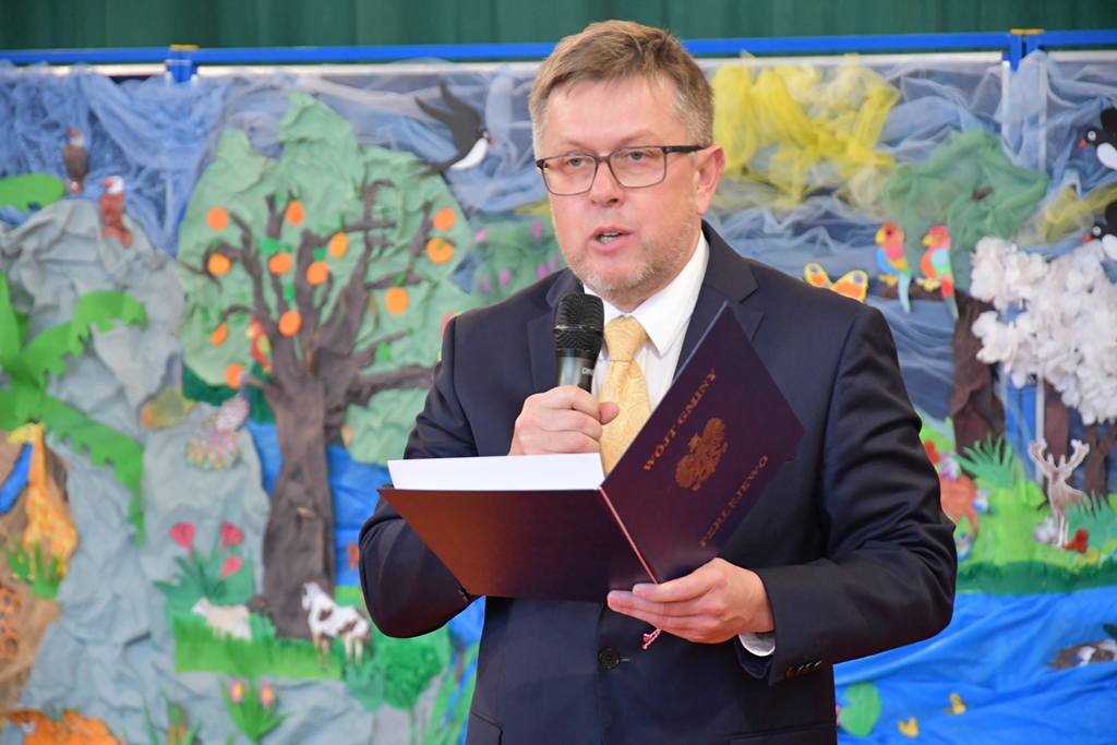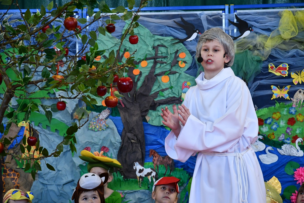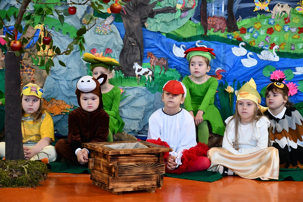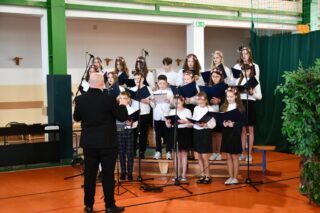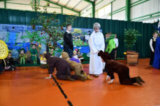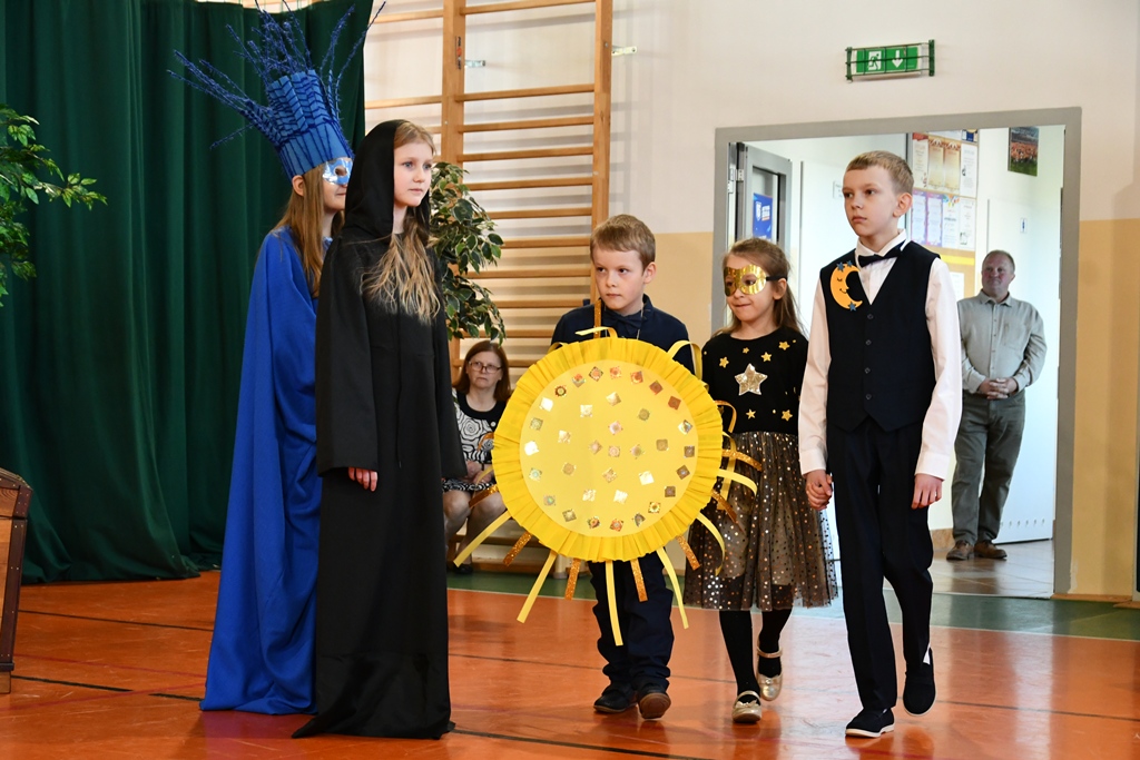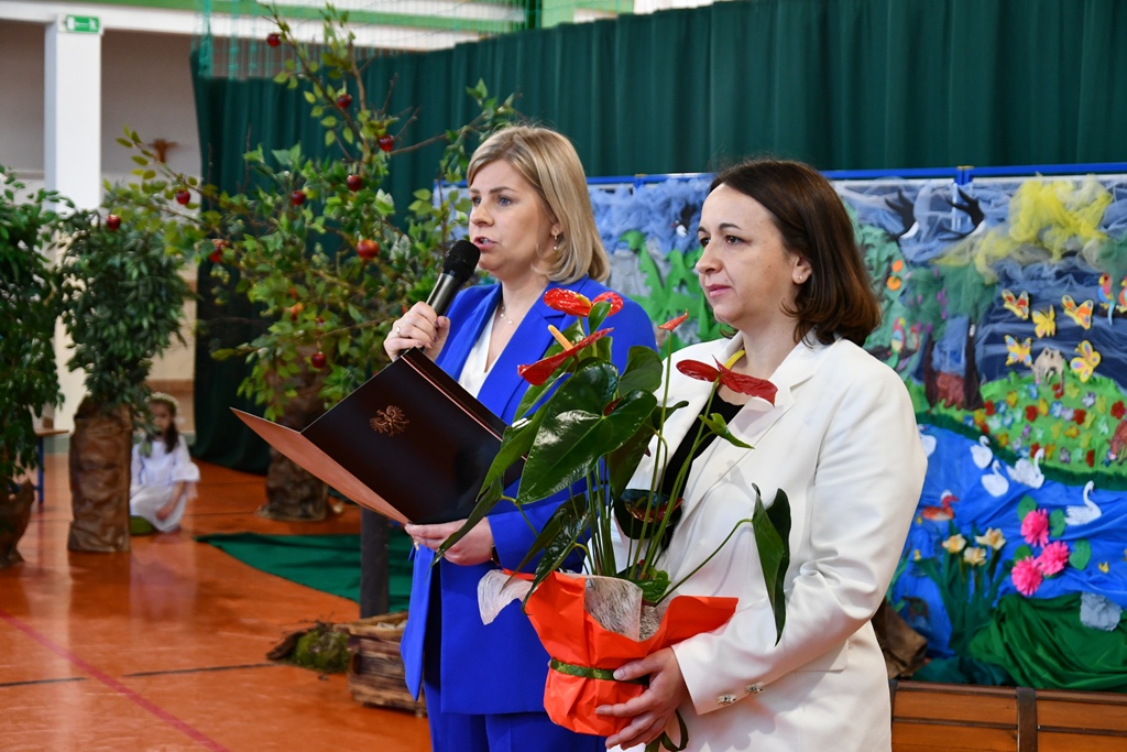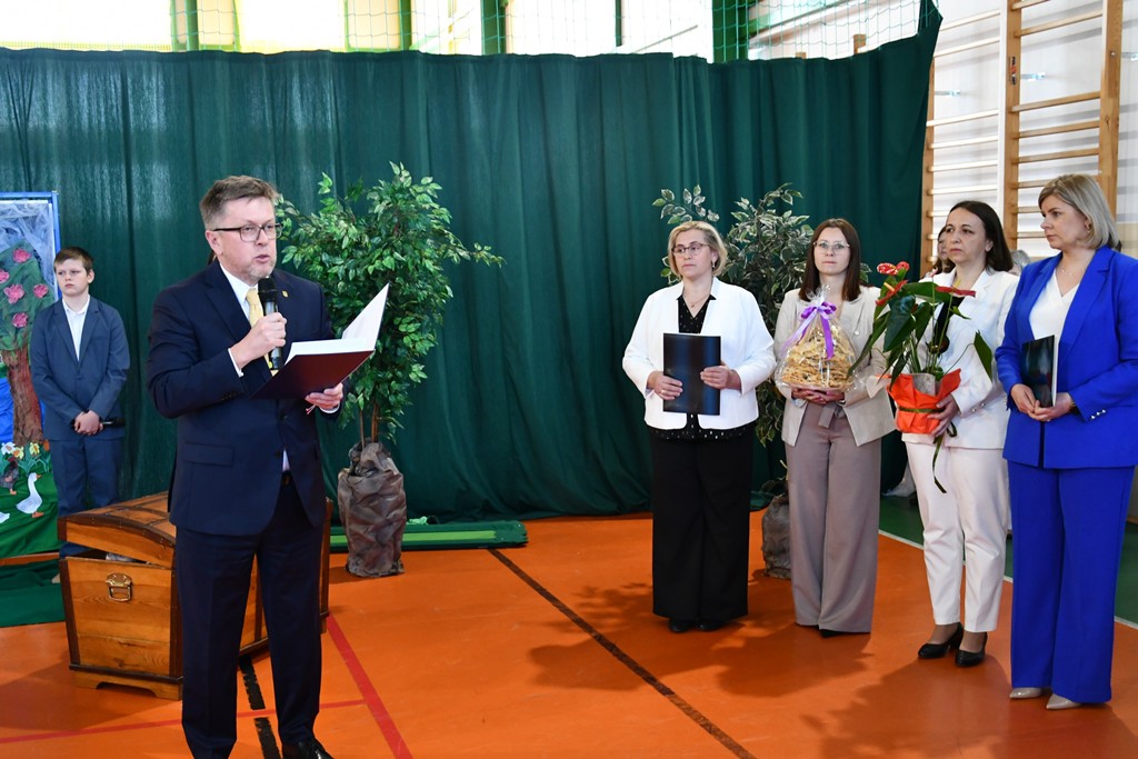 Kolejny dzień wizytacji rozpoczęły odwiedziny Szkoły Podstawowej. Słowa powitania skierował wójt gminy Perlejewo Jakub Wierzbicki, przedstawicie uczniów, rodziców oraz dyrekcja Szkoły. Aneta Leszczyńska – dyrektor Szkoły – zaprosiła wszystkich do obejrzenia części artystycznej zatytułowanej „Z prochu i żebra”. Bogata i starannie przygotowana scenografia, dopracowane stroje a przede wszystkim profesjonalna zaangażowanie i gra małych artystów przeniosła wszystkich do momentu stworzenia świata i powołania do istnienia człowieka. Ciekawymi tekstami i utworami muzycznymi artyści ukazali ponadczasową wartość rodziny. Spektakl został przygotowany pod czujnym okiem Lilii Wojtkowskiej przy współpracy wielu osób. Wystąpiła również schola oraz zespół muzyczny przygotowany pod kierunkiem Łukasza Kraujutowicza. Biskup wyraził radość i wdzięczność za przygotowanie tak imponującego przedstawienia. Udzielił zebranym pasterskiego błogosławieństwa. Nie zabrakło także czasu na rozmowę z gronem pedagogicznym.