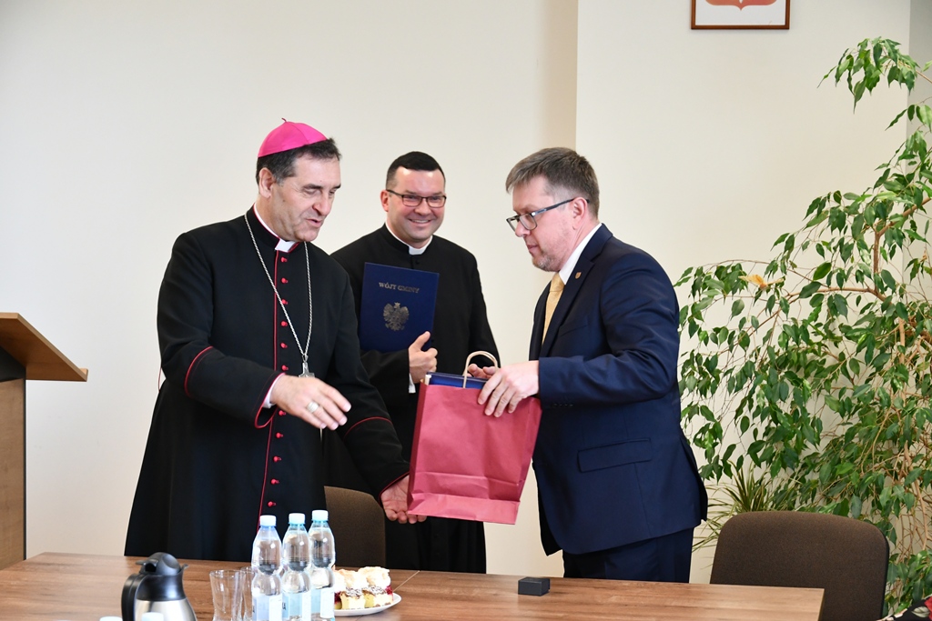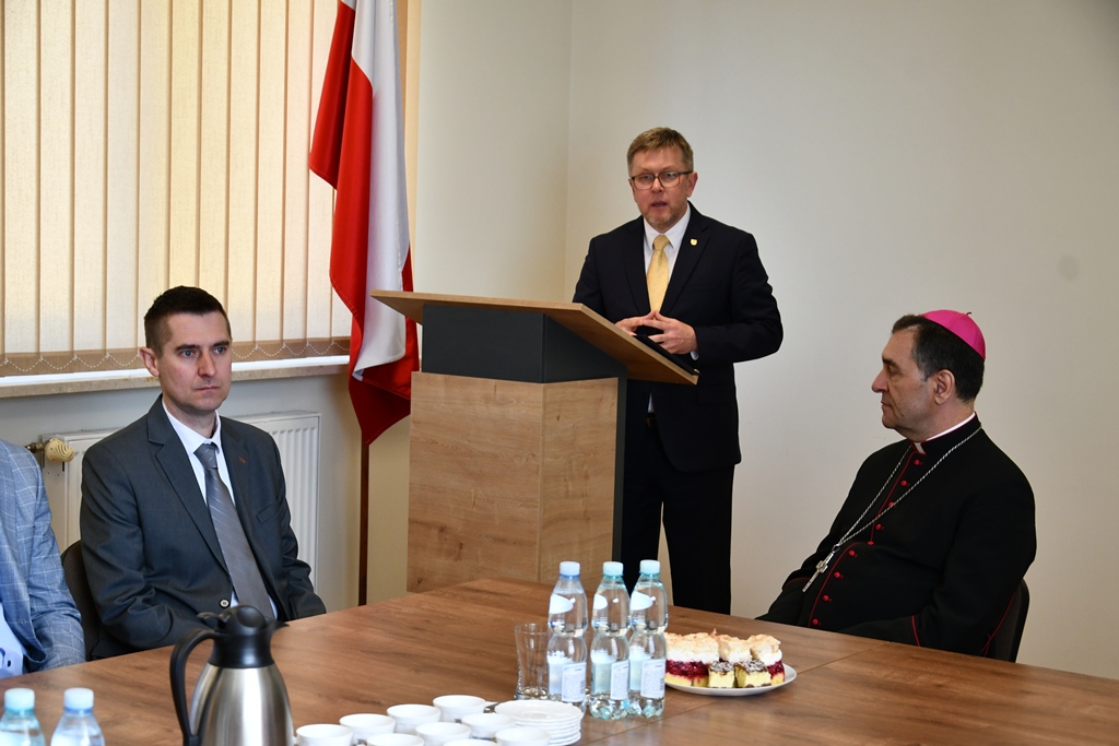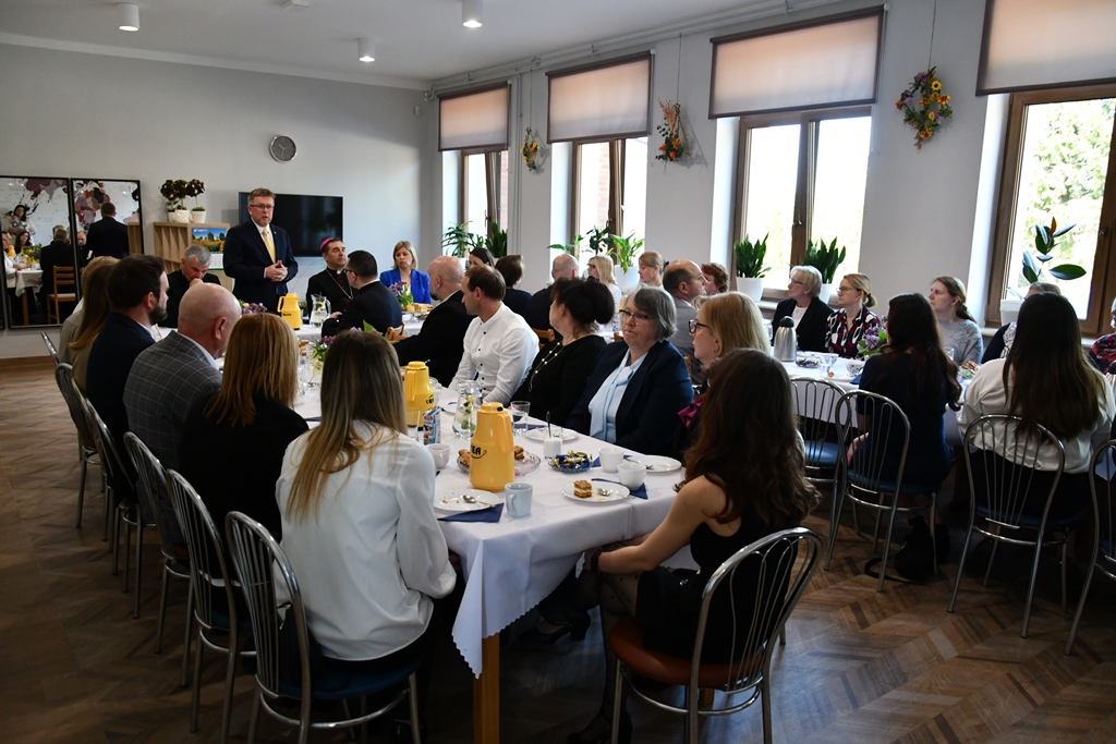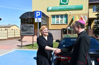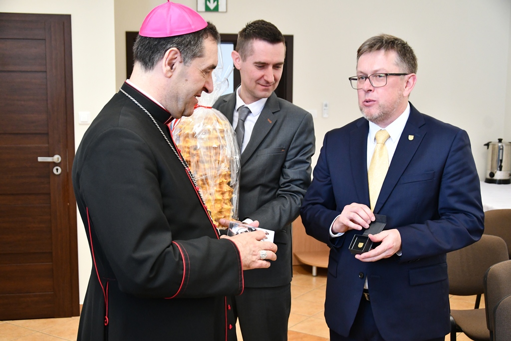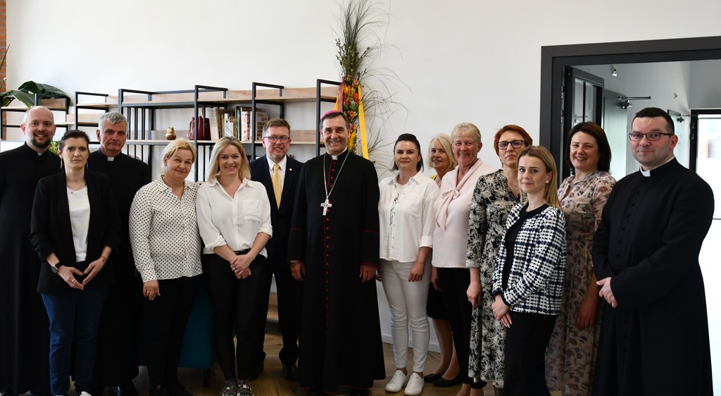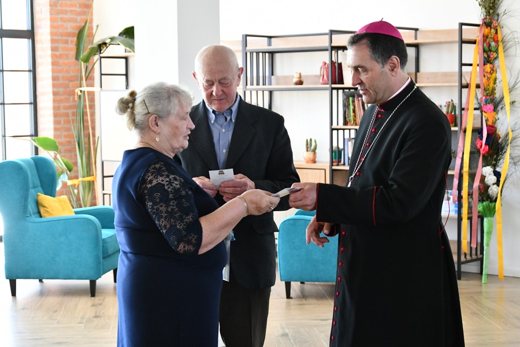 Biskup odwiedził także Centrum Opiekuńczo-Mieszkalne. Przy wspólnym stole miał okazję porozmawiać zarówno z kierownik ośrodka Agnieszką Markowską – Zacharewicz i opiekunami, jak i podopiecznymi tego ośrodka. Pasterz diecezji miał okazję odwiedzić siedzibę Banku Spółdzielczego. Jego pracownicy na czele z dyrektor Barbarą Wojtkowską poprosili biskupa o udzielenie błogosławieństwa.