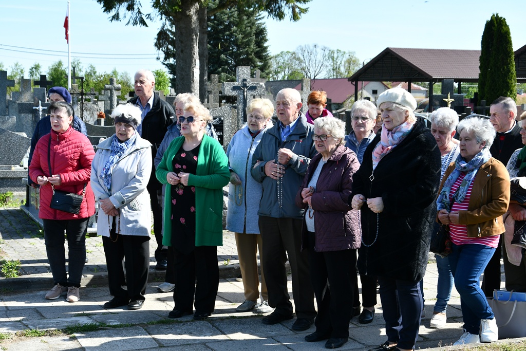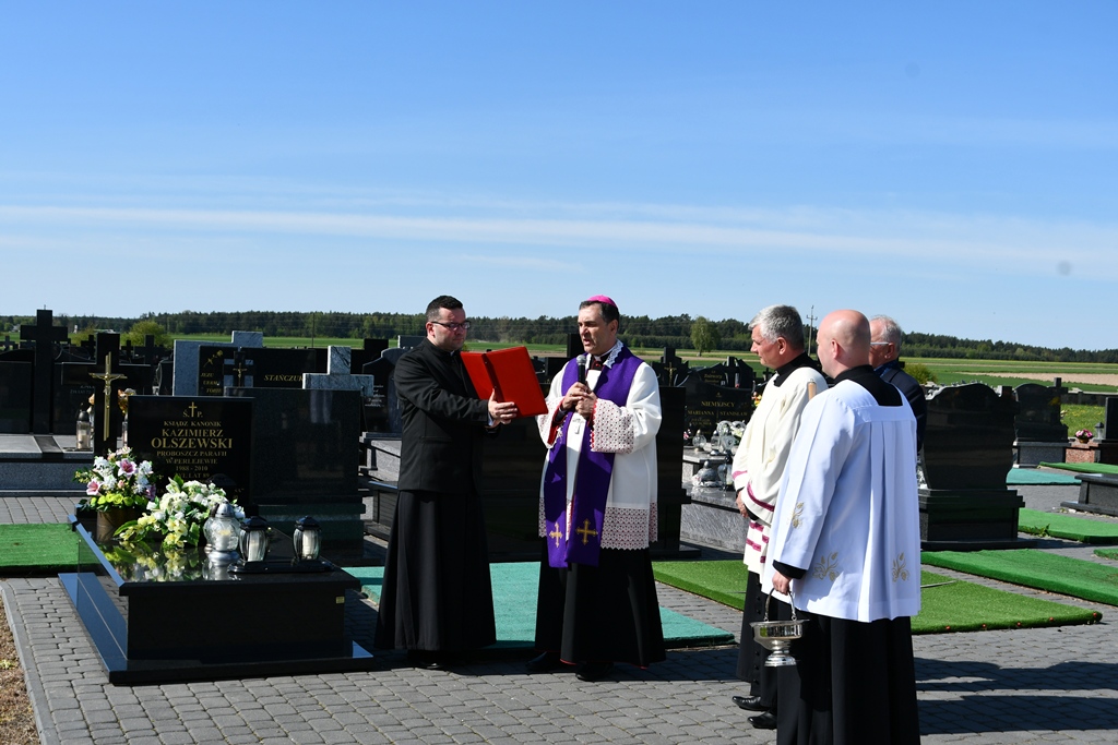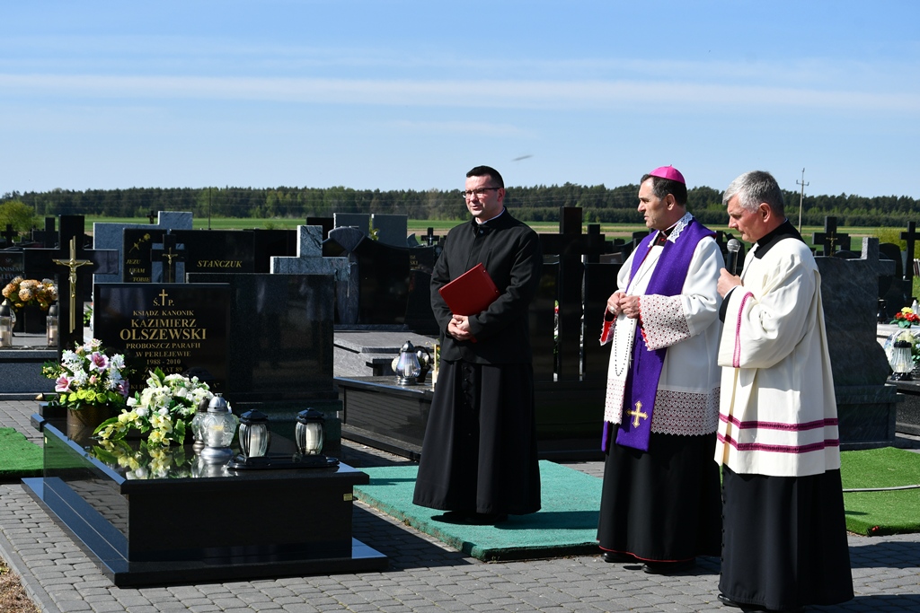 Zakończenie wizytacji stanowiło modlitewne spotkanie na cmentarzu parafialnym. Podczas procesji z kościoła modlono się Koronką do Bożego Miłosierdzia. Procesja zatrzymała się przy grobie ks. kan. Kazimierza Olszewskiego – wieloletniego proboszcza perlejewskiej parafii. Biskup odmówił specjalne modlitwy w intencji zmarłych. Podziękował również za dbałość o ład i porządek na cmentarzu.