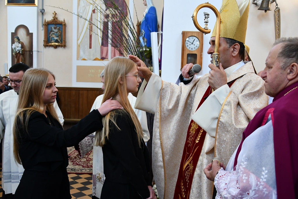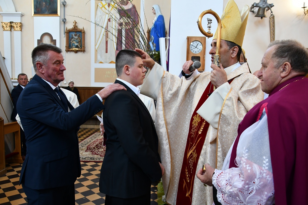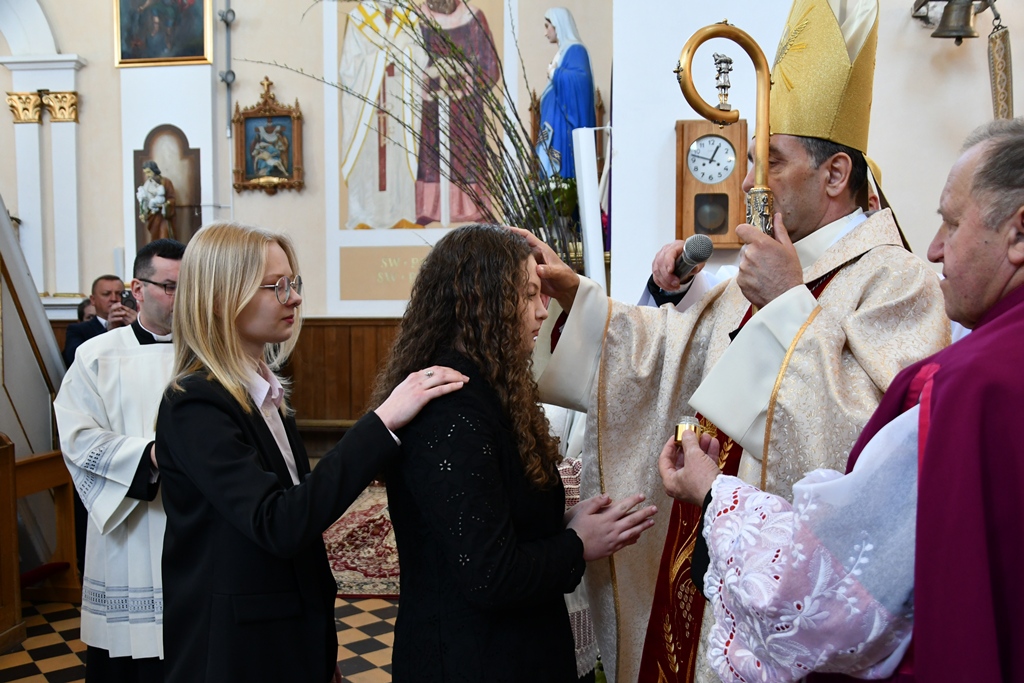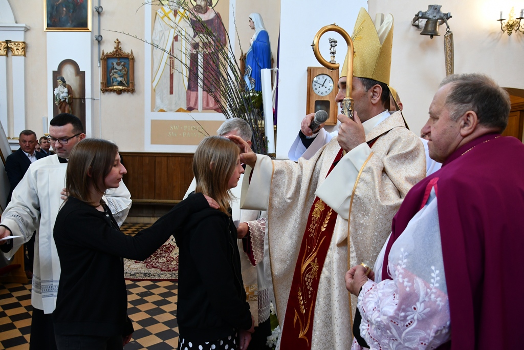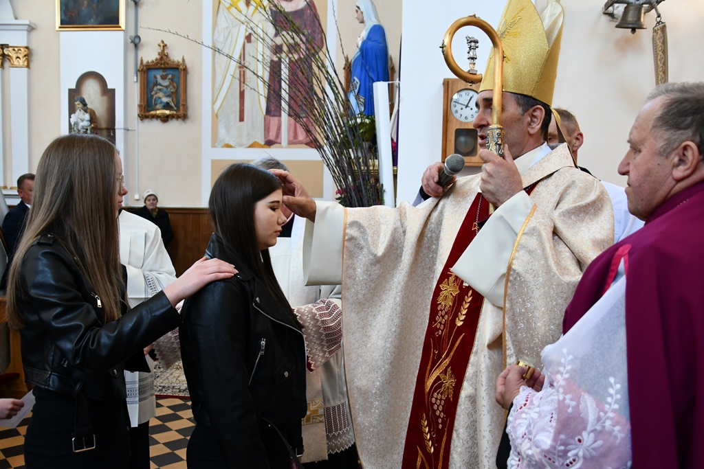 Zwieńczeniem pierwszego dnia wizytacji była Msza św., podczas której biskup udzielił sakramentu bierzmowania. O tę posługę biskupa poprosili rodzice bierzmowanej młodzieży, podziękowała zaś sama młodzież.