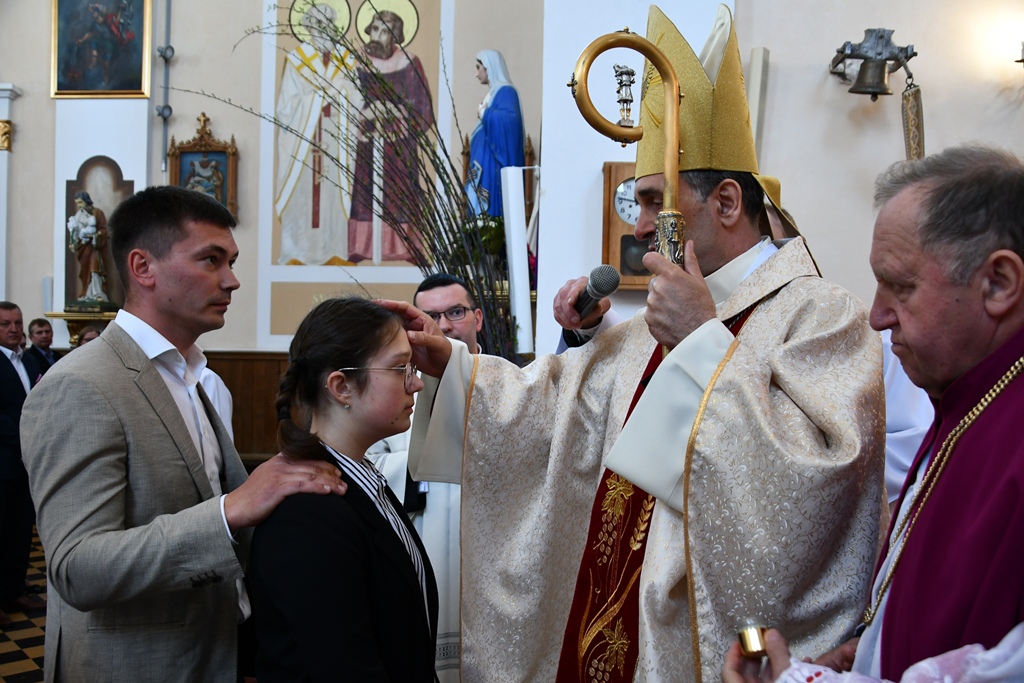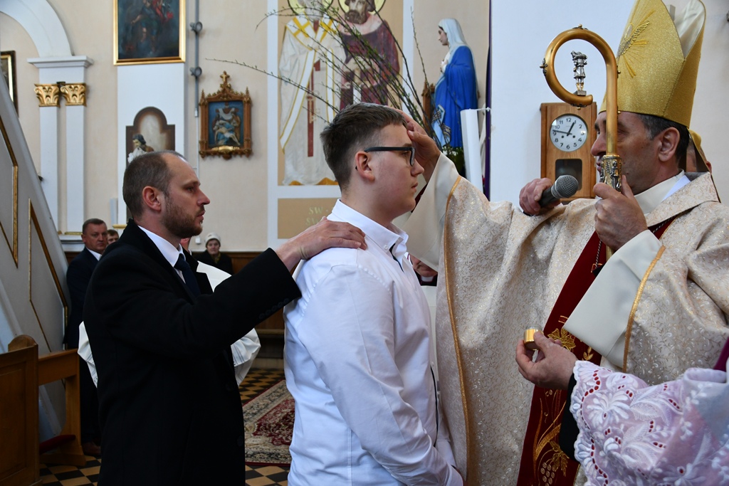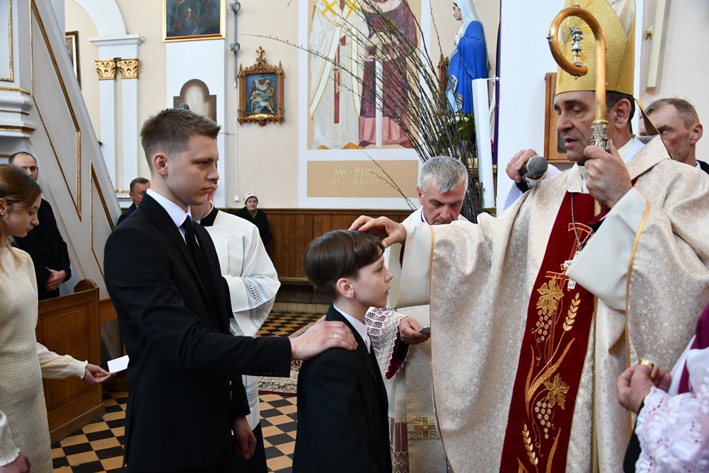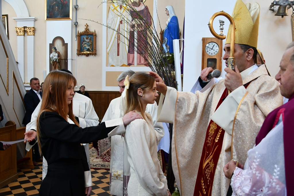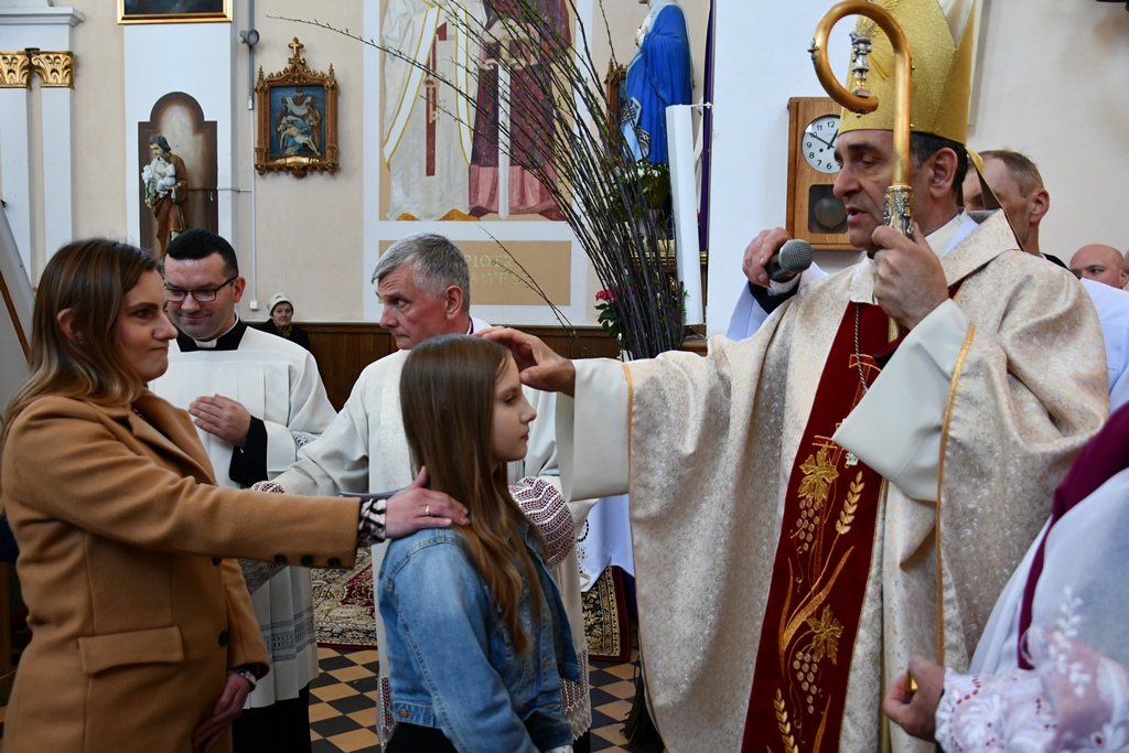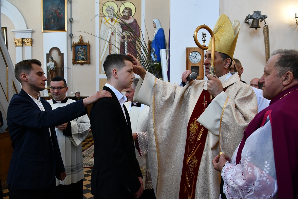 Zwieńczeniem pierwszego dnia wizytacji była Msza św., podczas której biskup udzielił sakramentu bierzmowania. O tę posługę biskupa poprosili rodzice bierzmowanej młodzieży, podziękowała zaś sama młodzież.