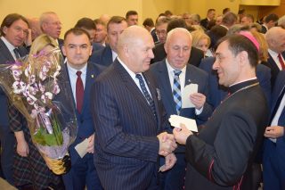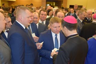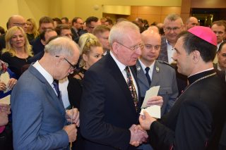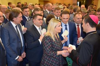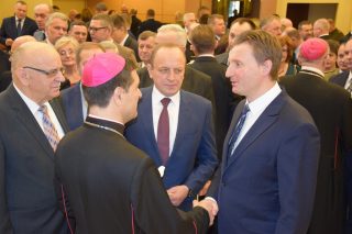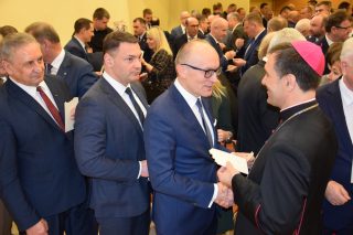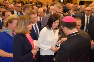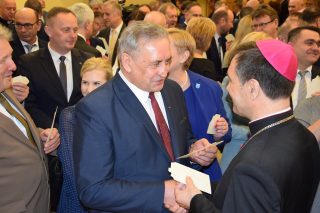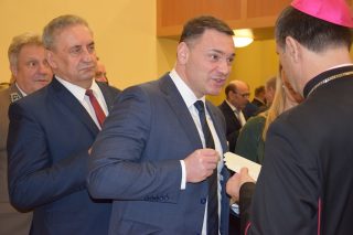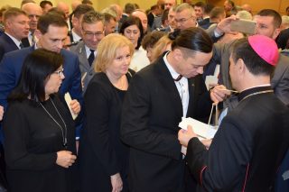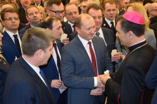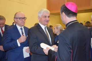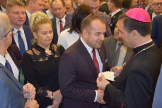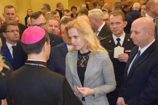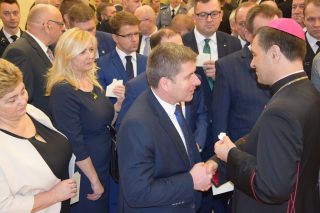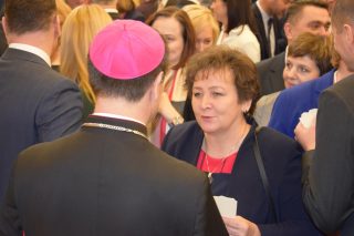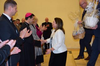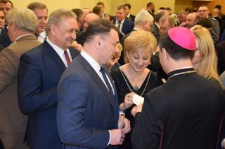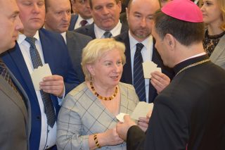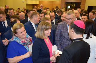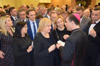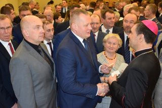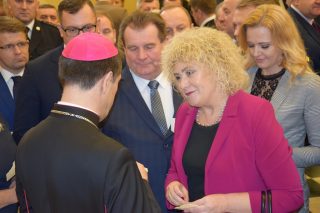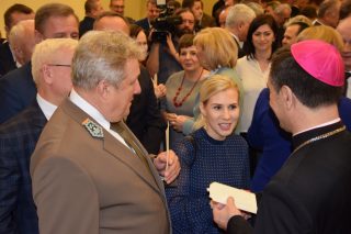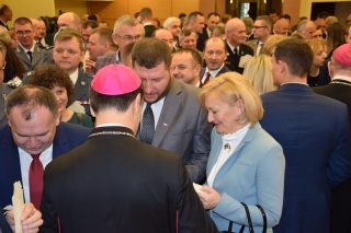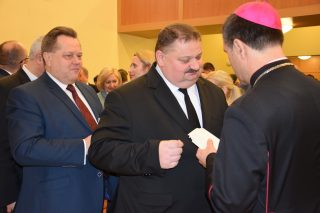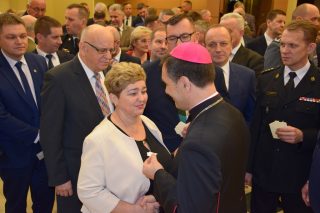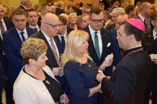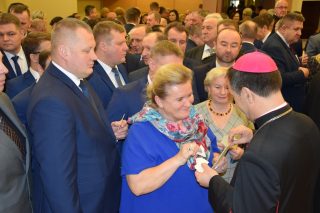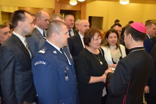 W imieniu przybyłych życzenia na ręce ks. bpa Piotra Sawczuka oraz bpa Antoniego Pacyfika Dydycza złożyła Ewa Besztak, starosta Powiatu Węgrowskiego w towarzystwie wicestarosty węgrowskiego Marka Renika oraz przewodniczącego Rady Powiatu Węgrowskiego Leszka Redosza.