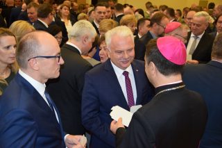 Ks. prof. Waldemar Chrostowski w referacie pt. ,,Mężczyzną i niewiastą stworzył ich” podjął istotny temat z punktu widzenia kulturowego i wiary chrześcijańskiej. Nie trzeba nikogo przekonywać, zdaniem prelegenta, iż w centrum dzisiejszej debaty ideologicznej, politycznej, kulturowej, religijnej znalazła się rodzina i małżeństwo. Jedno i drugie ma ścisły związek z człowiekiem i odpowiedzią na pytanie: kim jest człowiek? Aktualnie mamy do czynienia z tendencjami, nurtami, które, jak zauważał profesor, wcześniej nie przychodziły do głowy. Zarówno koncepcja kobiety i mężczyzny jak i wartości z nią związane zostały mocno zakwestionowane. Jak wskazał prelegent, obrazem Boga w człowieku jest zarówno to, co duchowe, jak i to co cielesne. Kontynuując mówił, iż obecnie próbuje się wmówić, że mężczyzna i kobieta to kwestia kulturowa i sprawa wyboru. Profesor rozwinął tę rzeczywistość od strony teologicznej i biblijnej, kwestionując sączące się ideologie podważające naturalny porządek. W dalszej części referatu profesor pochylił się nad panowaniem, sprawowaniem władzy w świetle Pisma Świętego rozumianego jako podjęcie odpowiedzialności za powierzonych ludzi.