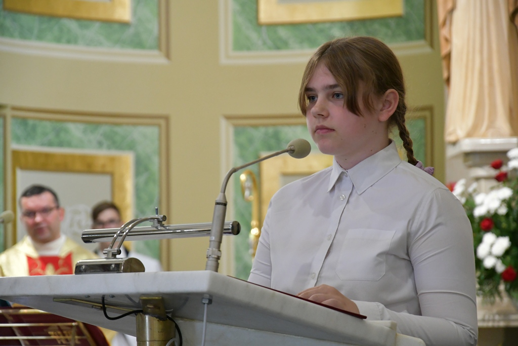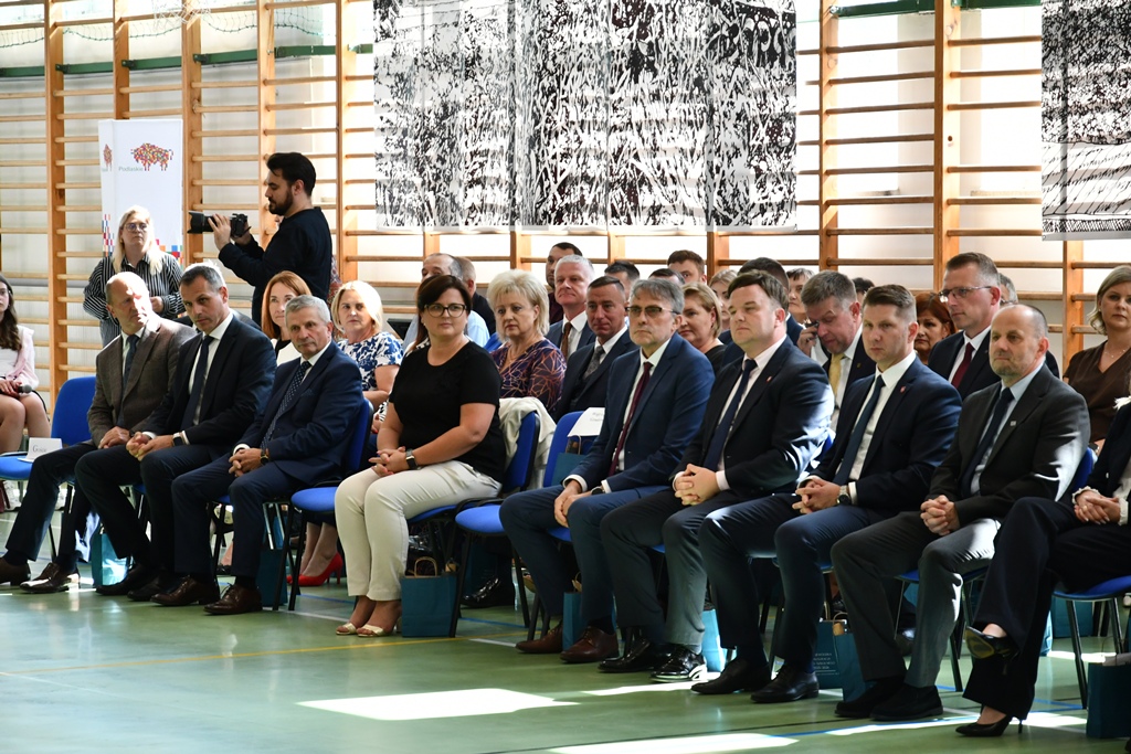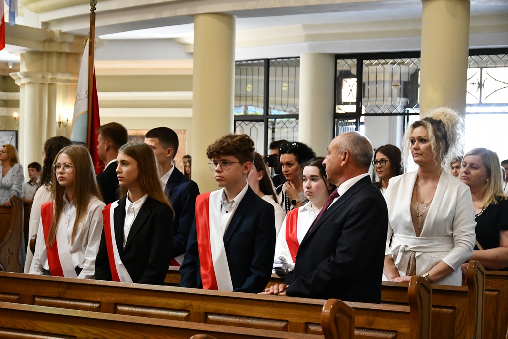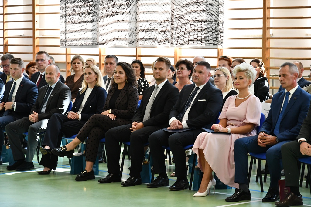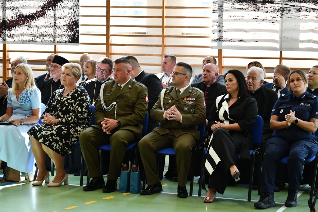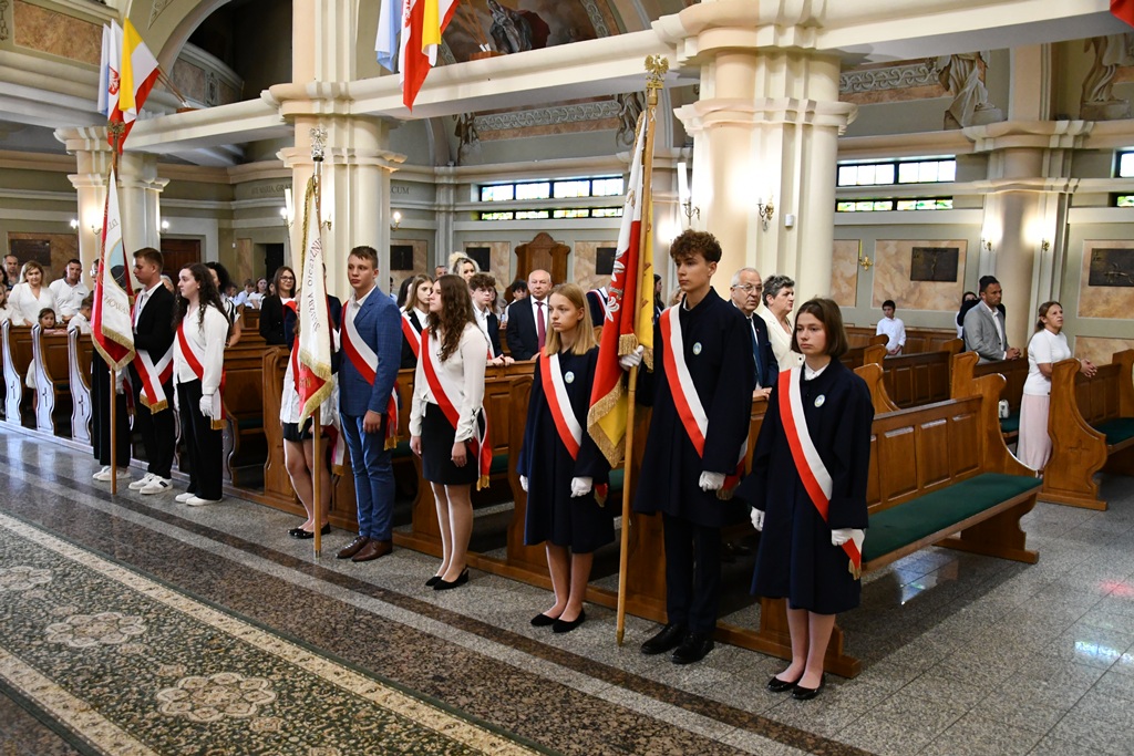 Przybyłych gości powitał miejscowy proboszcz ks. kan. Bohdan Sawicki. Podkreślił obecność duchowieństwa, władz parlamentarnych, oświatowych, samorządowych, służb mundurowych oraz pocztów sztandarowych.