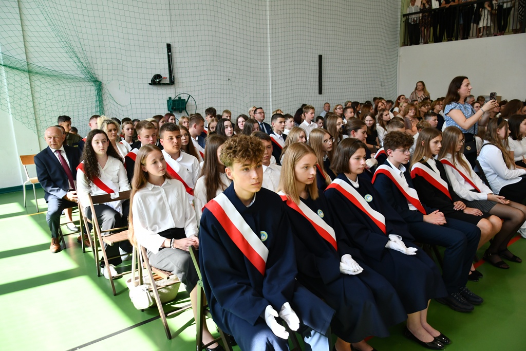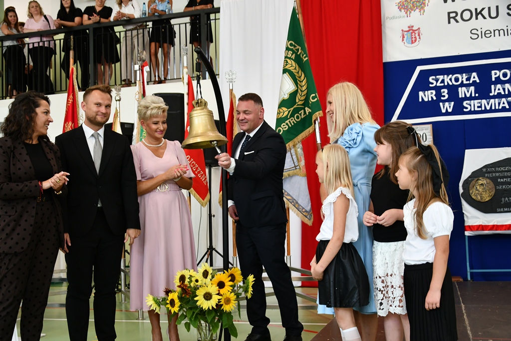 Wyznaczona delegacja uderzeniami w symboliczny dzwonek zakomunikowała wszystkim uroczyste rozpoczęcie nowego roku szkolnego 2025/2026.