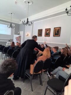 Kolejnym punktem programu były warsztaty edukacyjne o tematyce ludowej, tradycji promującej Podlasie. Pracownicy biura przedstawili wszystkie akcje koordynowane przez Caritas, w których wolontariusze mogą wziąć udział i nieść pomoc innym, a także przeprowadzili warsztaty, w których wolontariusze mogli aktywnie włączyć się w tworzenie filmików promujących wolontariat oraz podzielić się pomysłami na zbliżający się Dzień Dobra.