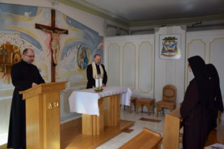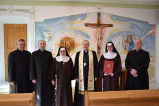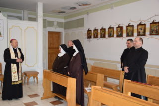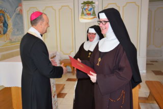 Moment ten poprzedziła wspólna modlitwa oraz słowo Ks. Biskupa, który wyraził wdzięczność Siostrom za ich obecność. Podkreślił rolę i znaczenie zakonów kontemplacyjnych, które nieustanną modlitwą wypraszają potrzebne łaski.