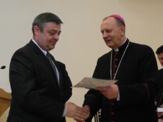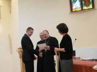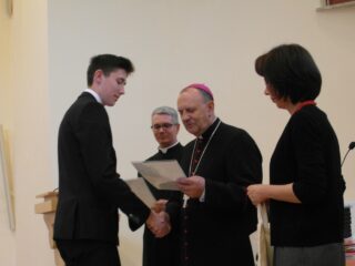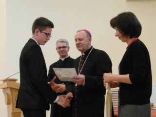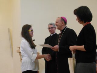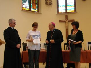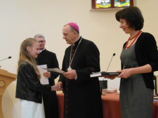 Dyplomy uczestnikom oraz pamiątkowe albumy dla szkół biorących udział w konkursie wręczył ks. bp Tadeusz Pikus, z gratulacjami dołączyli się ks. Piotr Wójcik.