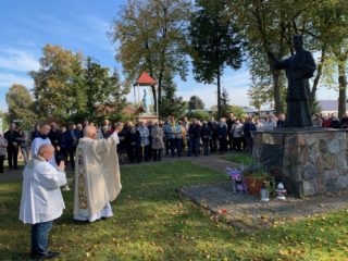 Powstał przepiękny pomnik, aby uczcić wielkiego Prymasa Tysiąclecia w hołdzie obrony wiary i Ewangelii. Ten Sługa Boży swoją wiarą i determinacją daje nam w dzisiejszych czasach przepiękny przykład jak w trudnościach możemy przybliżyć się przez Maryję do samego Jezusa Chrystusa. Dzisiaj światu potrzeba takich wzorów i niestandardowych działań w obronie wiary i Ewangelii. Słowo, które daje nam Jezus Chrystus wzmacnia nas, a święci pomagają nam wejść na dobrą drogę. Cała wspólnota kościoła chciała złożyć dziękczynienie za powołanie Kardynała Stefana Wyszyńskiego do grona błogosławionych i 3 października br. została poświęcona tablica w hołdzie naszego wielkiego rodaka. Widnieją na niej wymowne słowa: ,,Wszystko postawił na Maryję! Chcemy aby te słowa zapadły w naszych sercach. Maryjo prowadź nas i nasze dzieci oraz młodzież do swego syna Jezusa Chrystusa. Wdzięczni parafianie”.