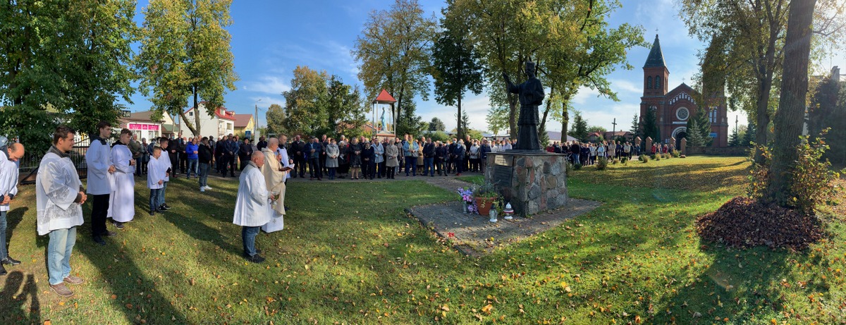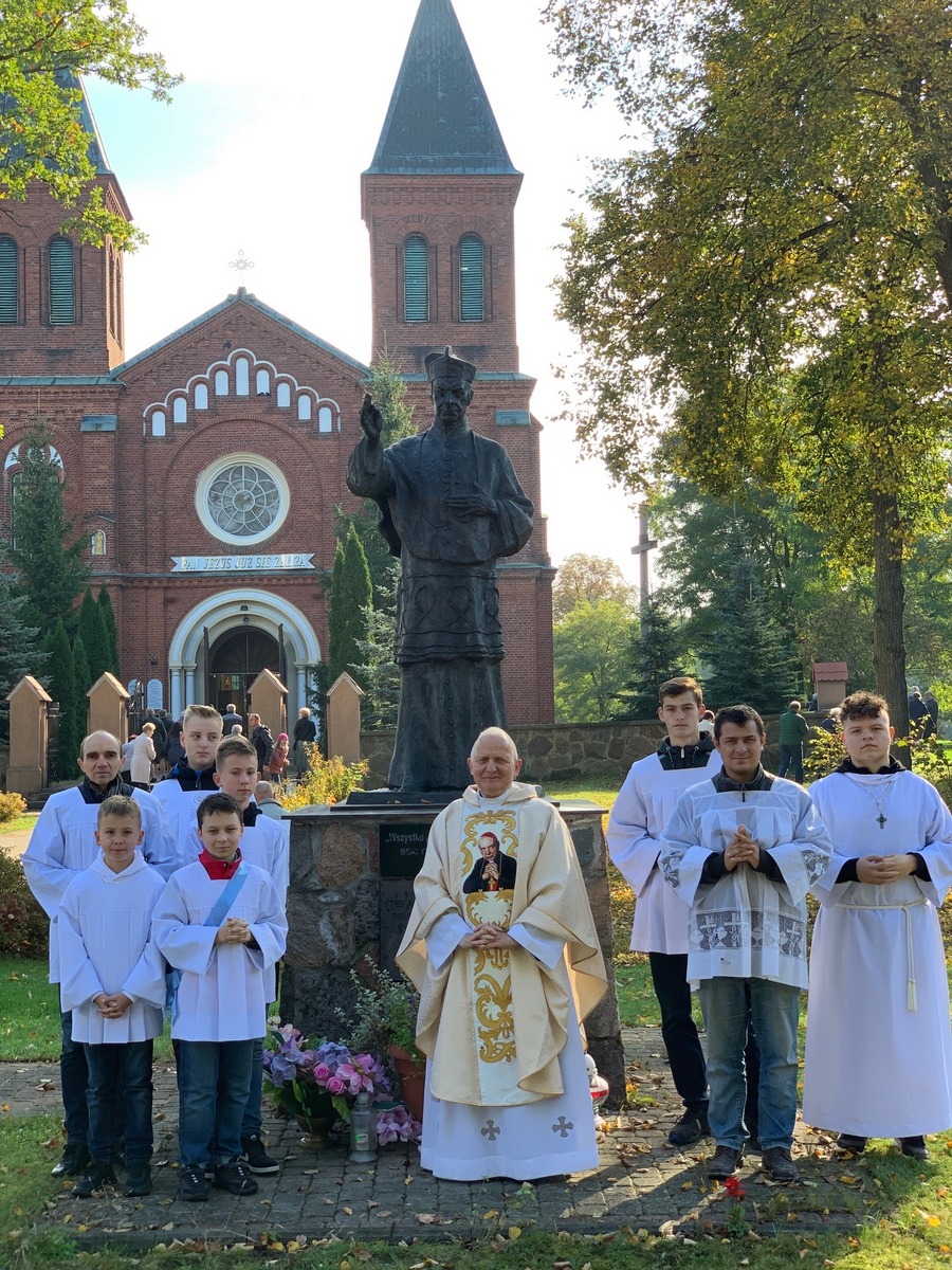 Powstał przepiękny pomnik, aby uczcić wielkiego Prymasa Tysiąclecia w hołdzie obrony wiary i Ewangelii. Ten Sługa Boży swoją wiarą i determinacją daje nam w dzisiejszych czasach przepiękny przykład jak w trudnościach możemy przybliżyć się przez Maryję do samego Jezusa Chrystusa. Dzisiaj światu potrzeba takich wzorów i niestandardowych działań w obronie wiary i Ewangelii. Słowo, które daje nam Jezus Chrystus wzmacnia nas, a święci pomagają nam wejść na dobrą drogę. Cała wspólnota kościoła chciała złożyć dziękczynienie za powołanie Kardynała Stefana Wyszyńskiego do grona błogosławionych i 3 października br. została poświęcona tablica w hołdzie naszego wielkiego rodaka. Widnieją na niej wymowne słowa: ,,Wszystko postawił na Maryję! Chcemy aby te słowa zapadły w naszych sercach. Maryjo prowadź nas i nasze dzieci oraz młodzież do swego syna Jezusa Chrystusa. Wdzięczni parafianie”.