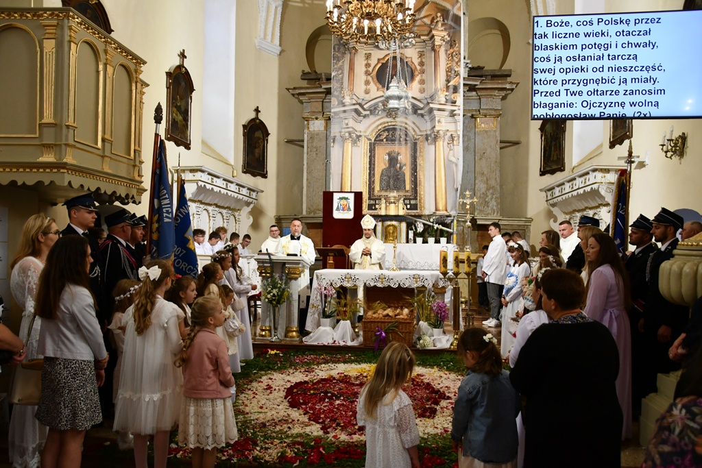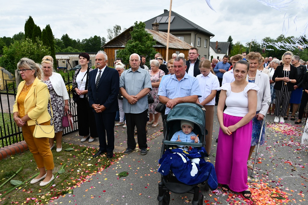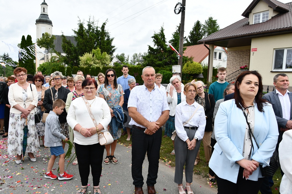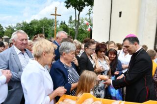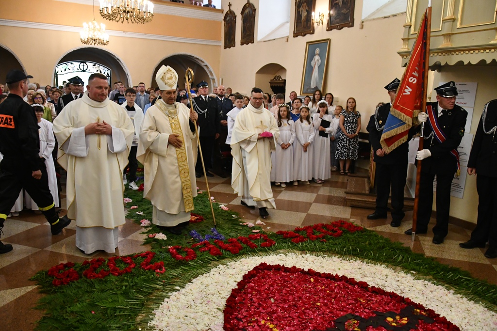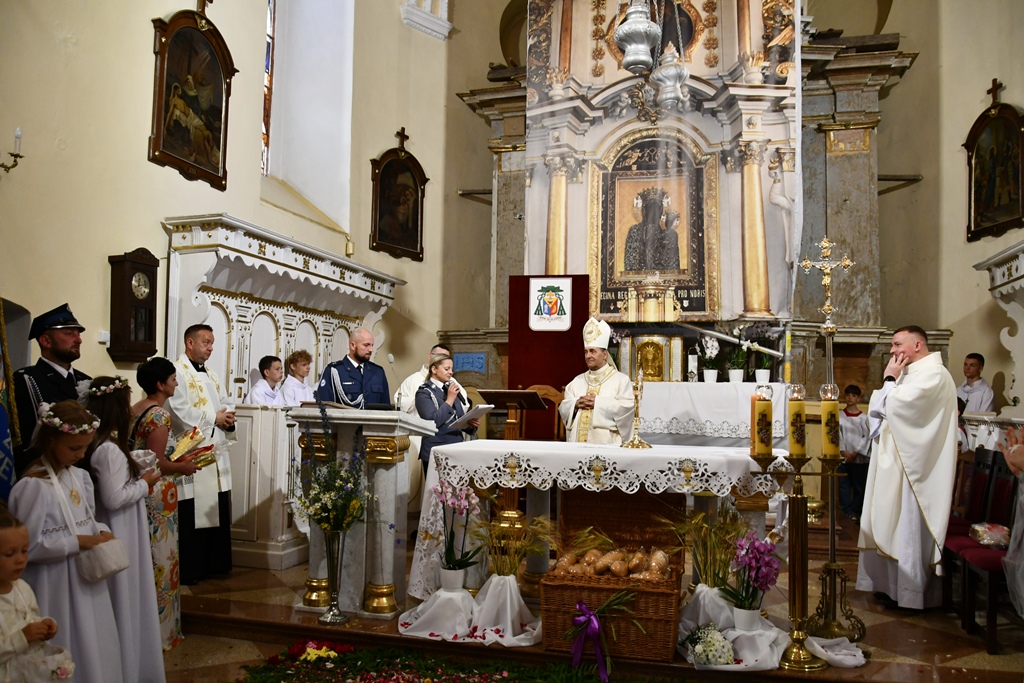 Na zakończenie wybrzmiało dziękczynne Te Deum. Proboszcz podziękował biskupowi za obecność i wspólną modlitwę. Wyraził wdzięczność wszystkim zaangażowanym w przygotowanie uroczystości, zwłaszcza osobom dekorującym drogę i poszczególne ołtarze. Słowa wdzięczności skierował wobec druhów strażaków oraz służby liturgicznej ołtarza. Do tych podziękowań dołączyli się również parafianie. Przedstawiciele wspólnoty parafialnej dziękowali biskupowi oraz swoim duszpasterzom. Nie zabrakło również słów życzeń złożonych bp. Piotrowi z racji zbliżającego się dnia imienin.