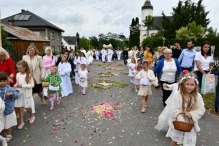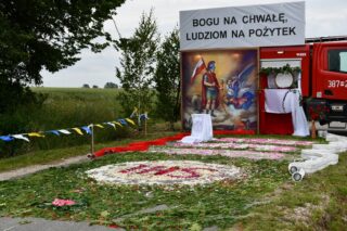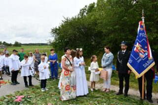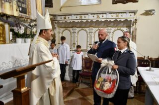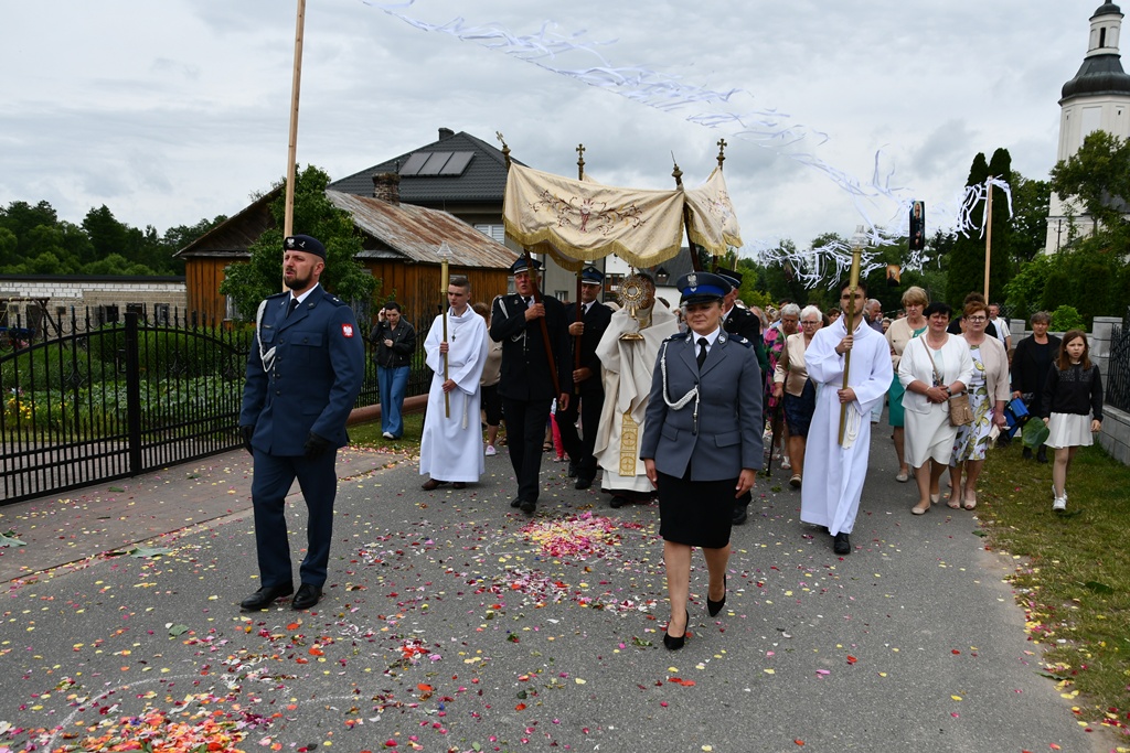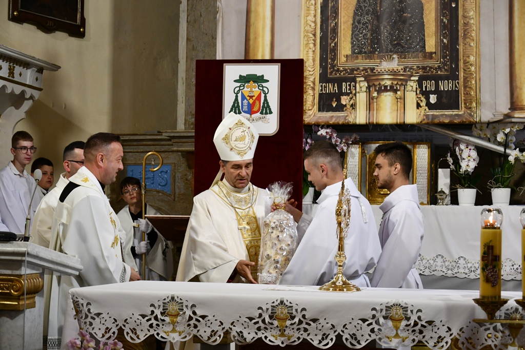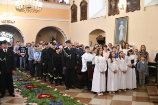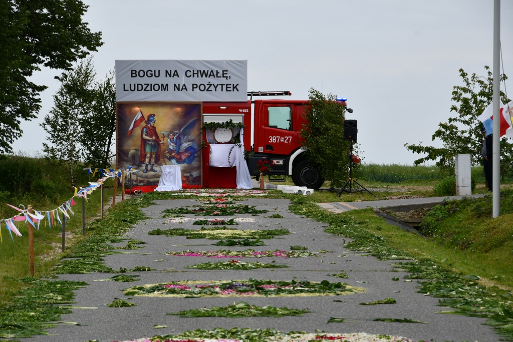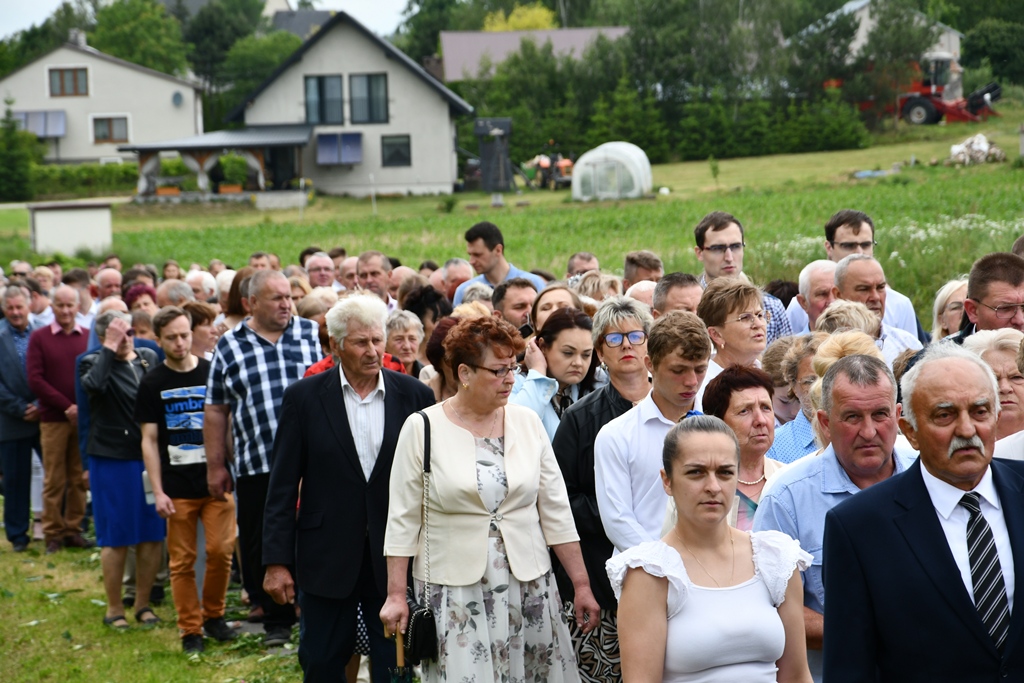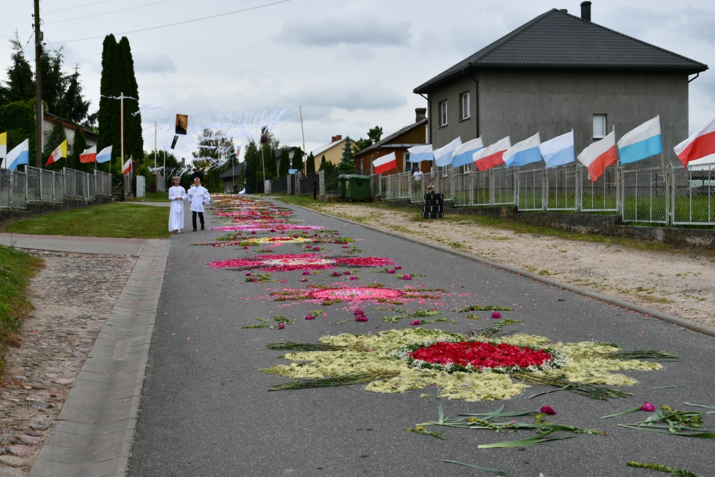 Na zakończenie wybrzmiało dziękczynne Te Deum. Proboszcz podziękował biskupowi za obecność i wspólną modlitwę. Wyraził wdzięczność wszystkim zaangażowanym w przygotowanie uroczystości, zwłaszcza osobom dekorującym drogę i poszczególne ołtarze. Słowa wdzięczności skierował wobec druhów strażaków oraz służby liturgicznej ołtarza. Do tych podziękowań dołączyli się również parafianie. Przedstawiciele wspólnoty parafialnej dziękowali biskupowi oraz swoim duszpasterzom. Nie zabrakło również słów życzeń złożonych bp. Piotrowi z racji zbliżającego się dnia imienin.