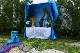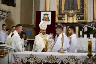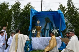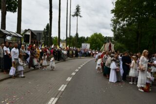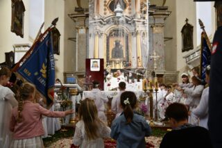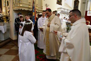 Biskup Piotr Sawczuk 19 czerwca 2025r. w uroczystość Najświętszego Ciała i Krwi Chrystusa przewodniczył Mszy św. w kościele parafialnym w Knychówku.