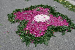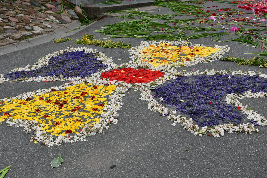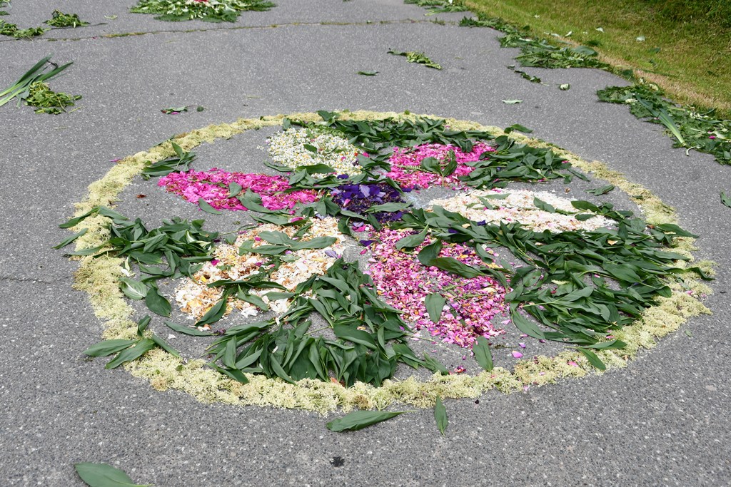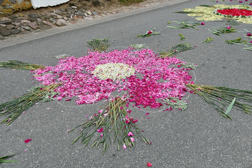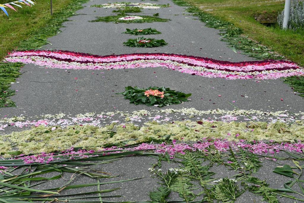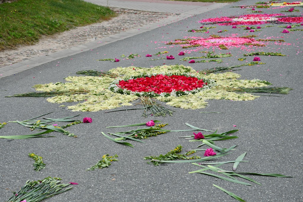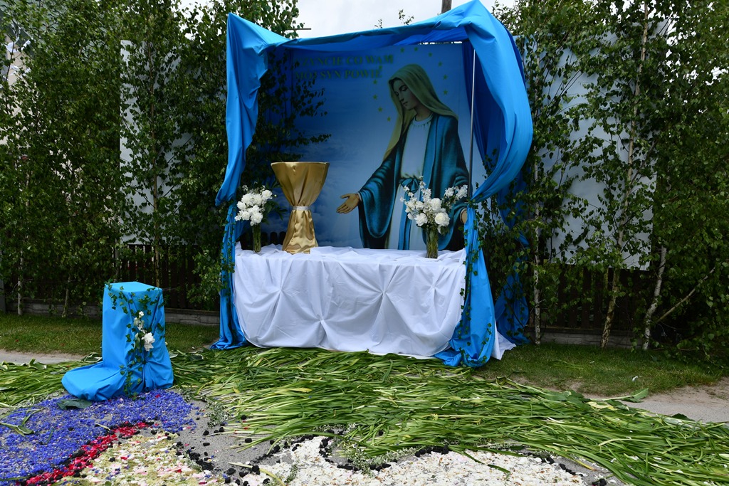 Po Eucharystii wyruszała procesja eucharystyczne do czterech ołtarzy. Przy nich odczytywane były fragmenty Ewangelii nawiązujące do tajemnicy Eucharystii. Biskup błogosławił wiernych Najświętszym Sakramentem. Z pieśniami eucharystycznymi na ustach procesja przechodziła barwnie udekorowanymi ulicami Knychówka. Na uwagę zasługuje fakt, że praktycznie cała trasa procesji przyozdobiona była kwiatowymi dywanami. Dzięki zaangażowaniu wspólnoty parafialnej, pod kierunkiem wikariusza – ks. Radosława Żukowskiego, Chrystus utajony w Najświętszym Sakramencie mógł przejść tak twórczo przyozdobioną drogą.
