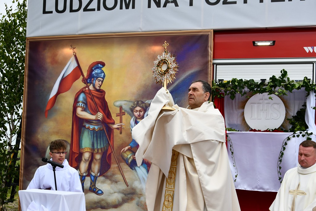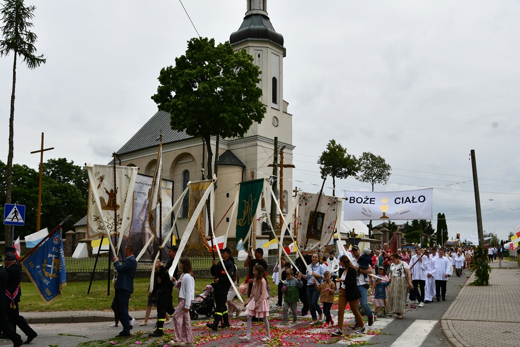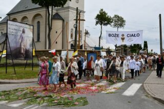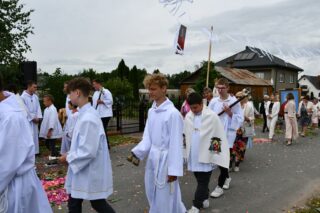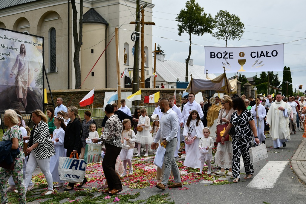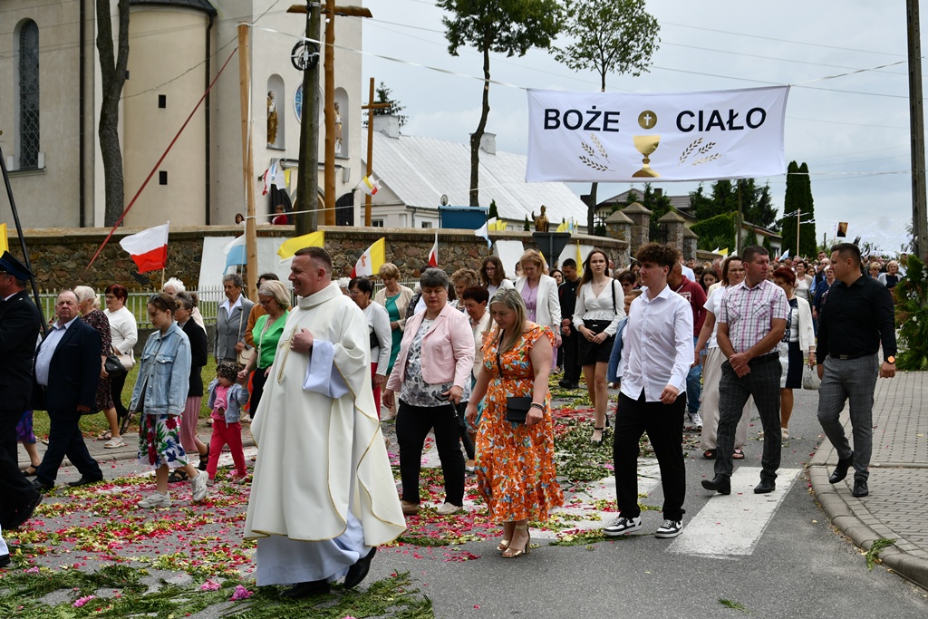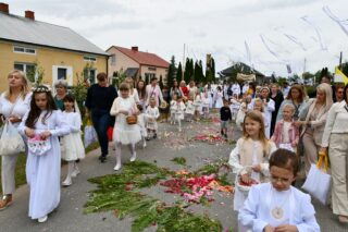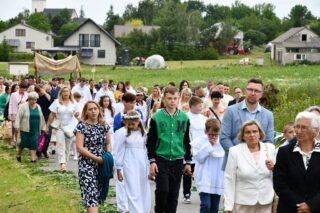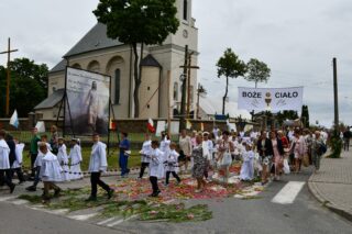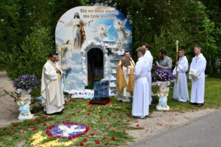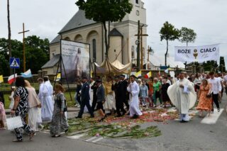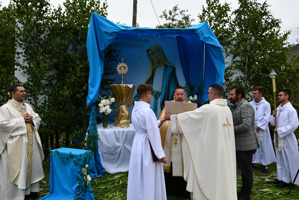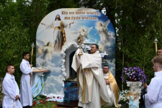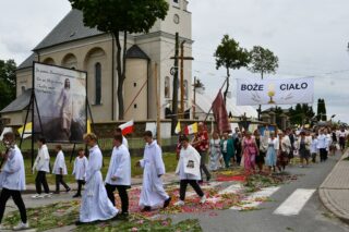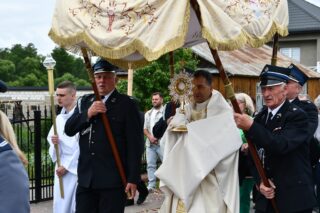 W homilii biskup między innymi wyjaśnił znaczenie procesji eucharystycznej charakteryzującej uroczystość Bożego Ciała. „Wyruszymy dzisiaj z najcenniejszym Skarbem naszej wiary – Najświętszym Sakramentem, w procesji drogami knychowskiej parafii, by publicznie oddać hołd naszemu Panu, ale też po to, by On przeciął drogi, którymi chodzimy na co dzień, by dotknął naszego życia i pomógł zrozumieć i uwierzyć, że On przecież towarzyszy nam ze swoją miłością cały czas. I dlatego, że idzie z nami, oświeca nas i wspiera, nasza życiowa droga staje się miejscem naszego zbawienia. W uroczystość Bożego Ciała bliskość Boga staje się szczególnie wymowna. Mimo że jest bliskością osłoniętą sakramentalnymi znakami, to jednak prawdziwą i bardzo głęboką, upewniającą, że nie jesteśmy pozostawieni sami sobie, że mamy dostęp do potężnego Źródła mocy i miłości” – powiedział biskup.