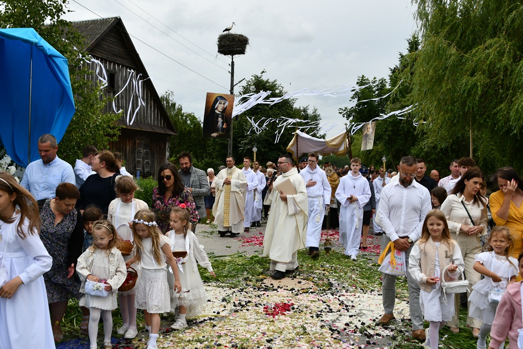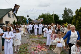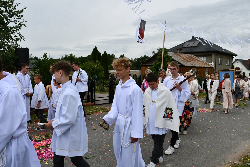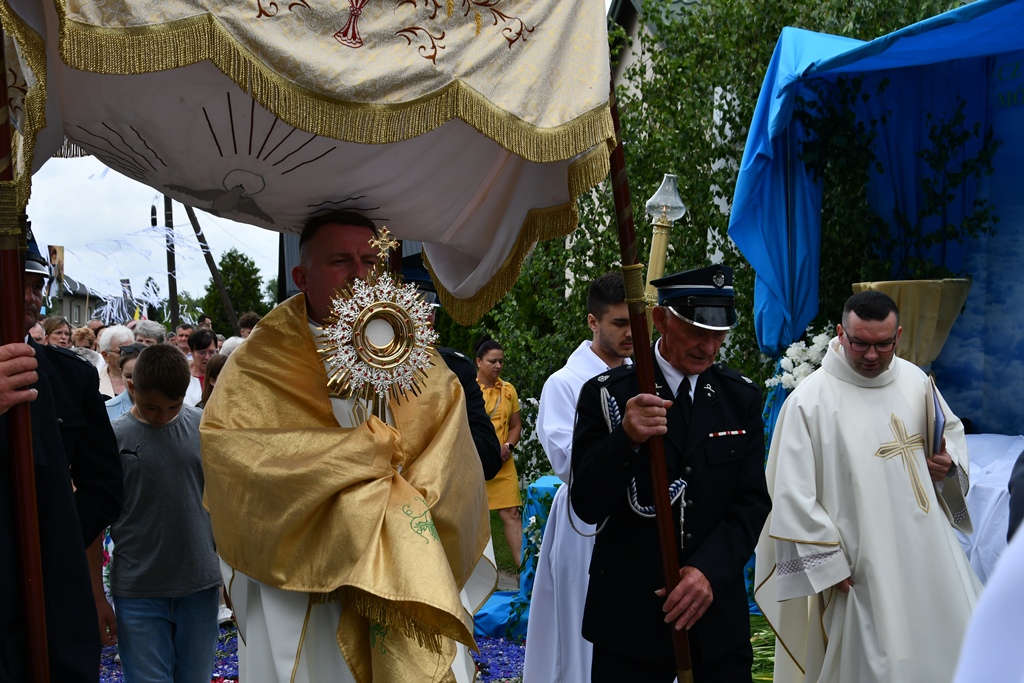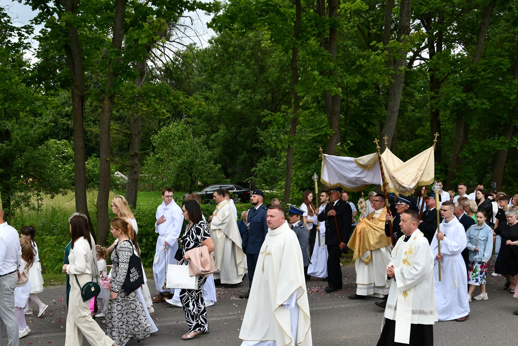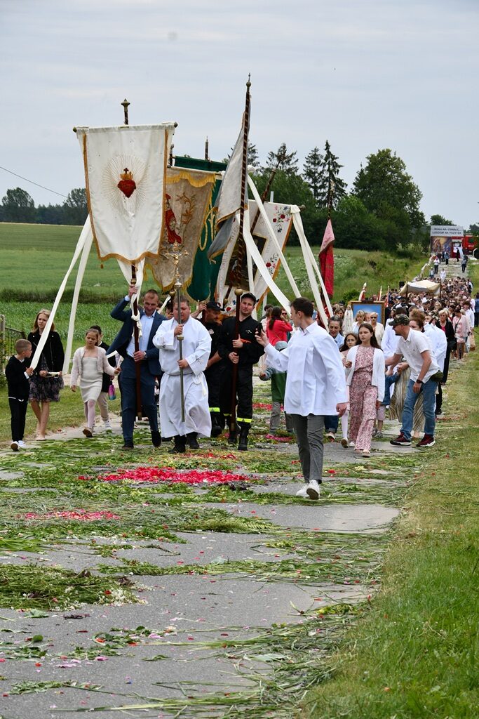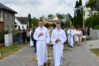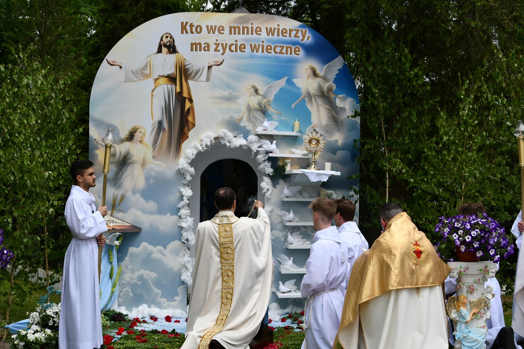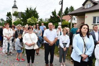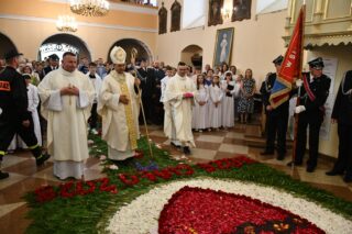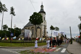 W homilii biskup między innymi wyjaśnił znaczenie procesji eucharystycznej charakteryzującej uroczystość Bożego Ciała. „Wyruszymy dzisiaj z najcenniejszym Skarbem naszej wiary – Najświętszym Sakramentem, w procesji drogami knychowskiej parafii, by publicznie oddać hołd naszemu Panu, ale też po to, by On przeciął drogi, którymi chodzimy na co dzień, by dotknął naszego życia i pomógł zrozumieć i uwierzyć, że On przecież towarzyszy nam ze swoją miłością cały czas. I dlatego, że idzie z nami, oświeca nas i wspiera, nasza życiowa droga staje się miejscem naszego zbawienia. W uroczystość Bożego Ciała bliskość Boga staje się szczególnie wymowna. Mimo że jest bliskością osłoniętą sakramentalnymi znakami, to jednak prawdziwą i bardzo głęboką, upewniającą, że nie jesteśmy pozostawieni sami sobie, że mamy dostęp do potężnego Źródła mocy i miłości” – powiedział biskup.