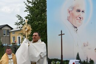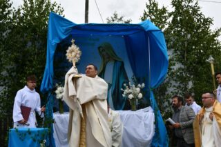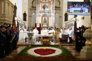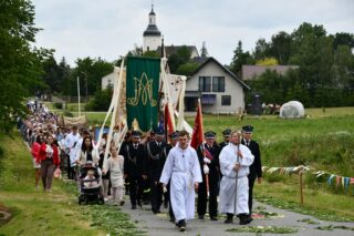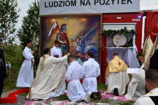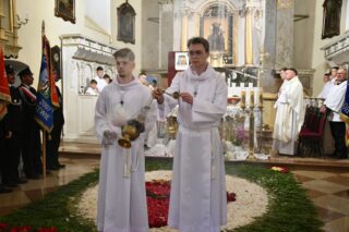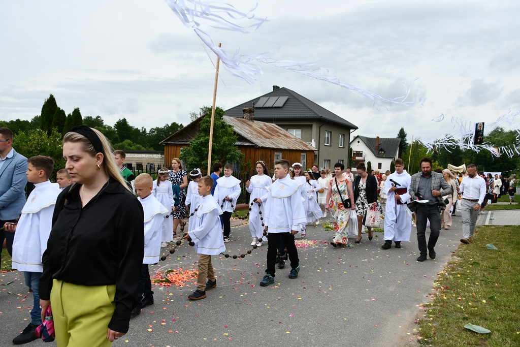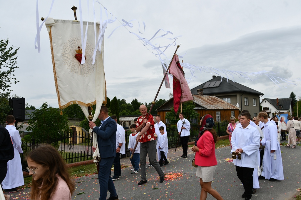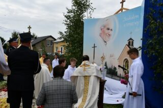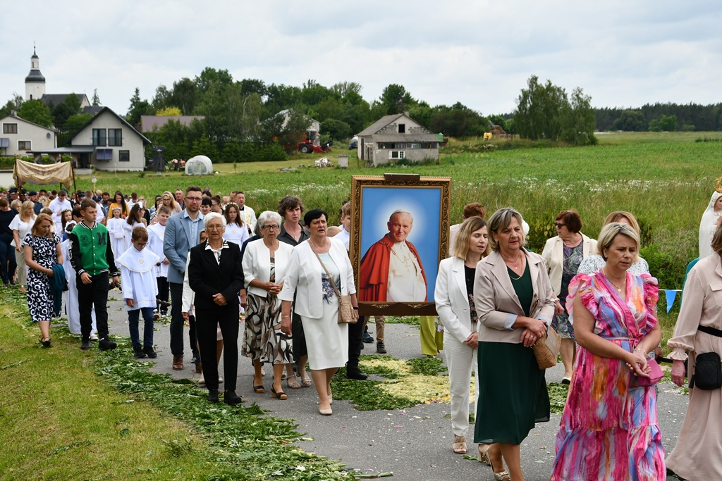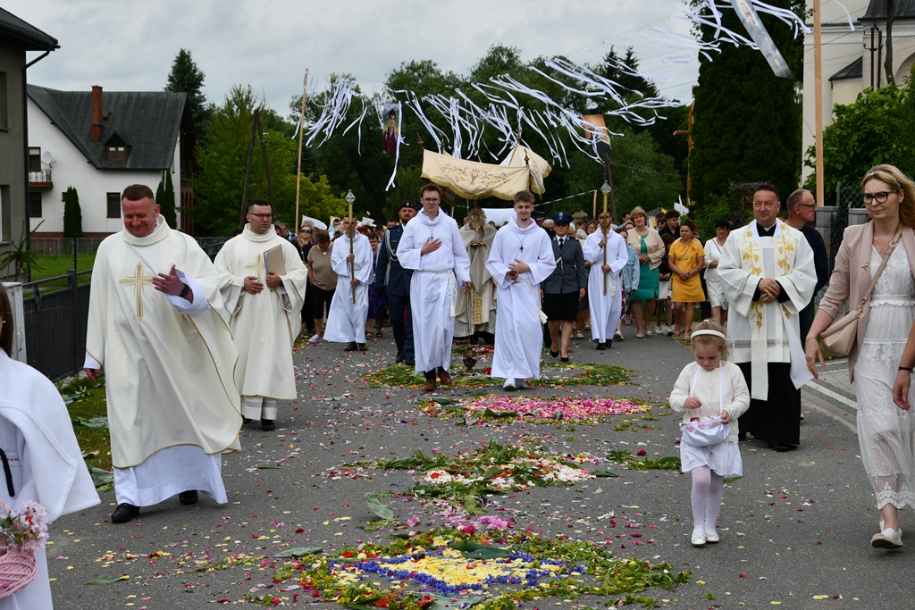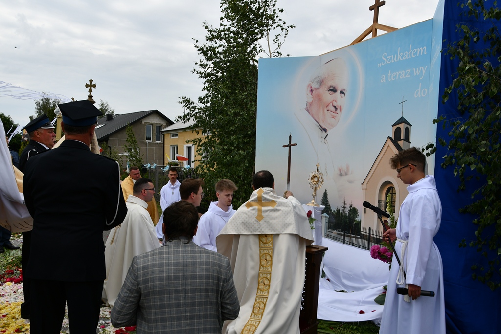 W homilii biskup między innymi wyjaśnił znaczenie procesji eucharystycznej charakteryzującej uroczystość Bożego Ciała. „Wyruszymy dzisiaj z najcenniejszym Skarbem naszej wiary – Najświętszym Sakramentem, w procesji drogami knychowskiej parafii, by publicznie oddać hołd naszemu Panu, ale też po to, by On przeciął drogi, którymi chodzimy na co dzień, by dotknął naszego życia i pomógł zrozumieć i uwierzyć, że On przecież towarzyszy nam ze swoją miłością cały czas. I dlatego, że idzie z nami, oświeca nas i wspiera, nasza życiowa droga staje się miejscem naszego zbawienia. W uroczystość Bożego Ciała bliskość Boga staje się szczególnie wymowna. Mimo że jest bliskością osłoniętą sakramentalnymi znakami, to jednak prawdziwą i bardzo głęboką, upewniającą, że nie jesteśmy pozostawieni sami sobie, że mamy dostęp do potężnego Źródła mocy i miłości” – powiedział biskup.