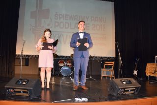 Wszystkich zgromadzonych artystów i gości 25. Festiwalu Piosenki Religijnej i Patriotycznej ,,Śpiewajmy Panu” Podlasie 2018 przywitali z uśmiechem na twarzy prowadzący spotkanie: Anna Żuromska, skarbnik Katolickiego Stowarzyszenia Młodzieży Diecezji Drohiczyńskiej oraz Mateusz Stefaniuk, Prezes KSM DD.
