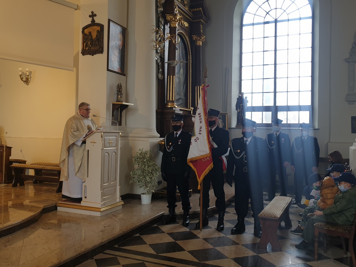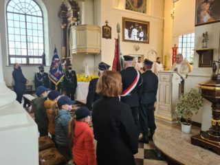 Eucharystia była sprawowana w intencji Ojczyzny oraz strażaków z racji przypadające następnego dnia wspomnienia św. Floriana. W homilii ks. Walenty zauważył, że na dźwięk syreny, strażacy śpieszą z pomocą, nierzadko narażając swoje zdrowie i życie. – A ilu jest takich, którzy słysząc dzwony, zatykają uszy? – pytał. Zdaniem ks. Proboszcza, św. Florian poprzez swoje męczeństwo uczy nas zawierzenia Panu Bogu oraz męstwa. – I za to Wam Drodzy Strażacy dziękujemy – podkreślił. Była to również okazja do wyrażenia wdzięczności zgromadzonym harcerzom 22. Drużyny Harcerskiej i zuchom 22. Gromady Zuchowej, którzy od najmłodszych lat uczą się patriotycznych postaw w służbie Bogu, Ojczyźnie i bliźniemu. Ks. Walenty życzył młodszym i starszym, aby nie zapominali o drodze do Pana Boga i dawaniu świadectwa nie tylko od święta.
